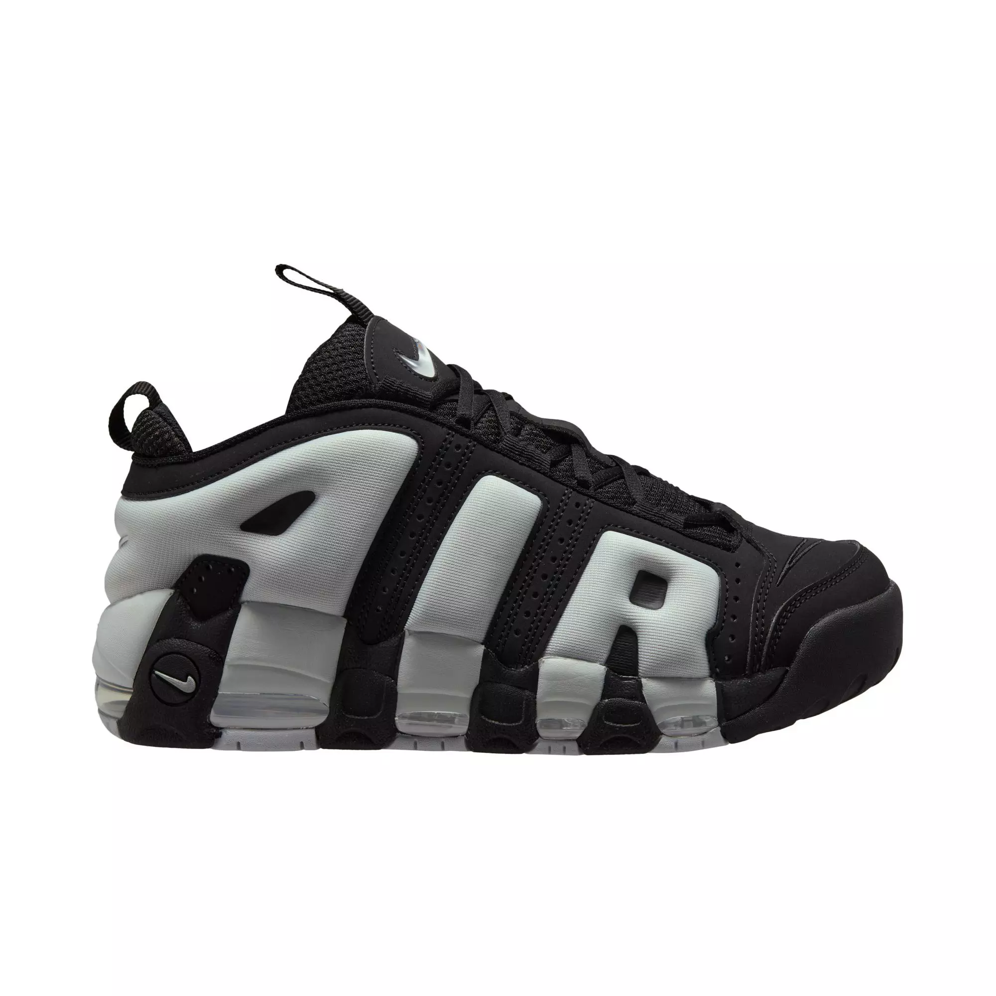 Experience basketball heritage with the Nike Scottie Pippen Air More Uptempo Low "Black/Photon Dust/Metallic Silver" Men's Shoe. You'll feel the impact of Nike Air cushioning and a padded collar that delivers superior comfort and support during play. Artful accents highlight iconic 'AIR' lettering along the sides.