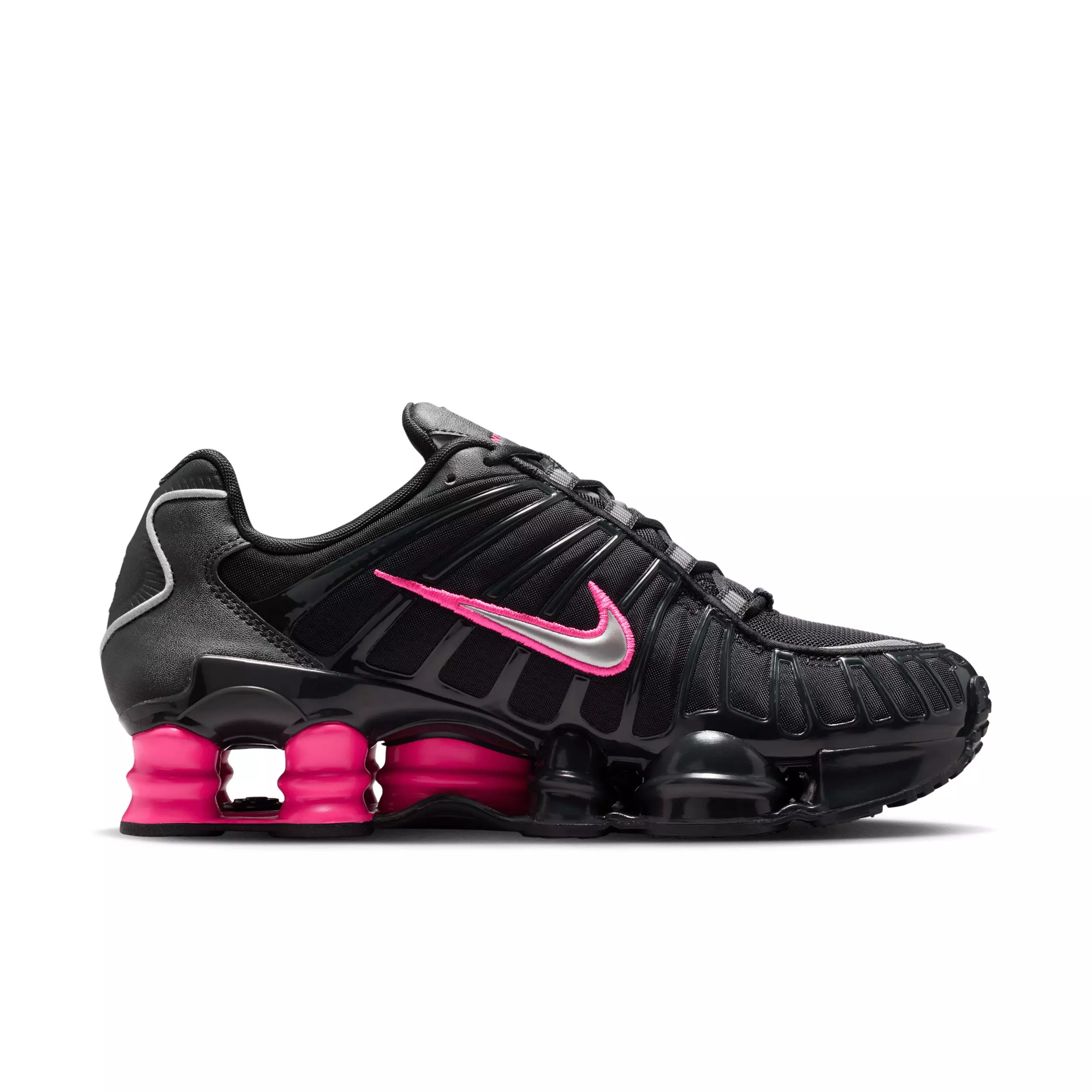 The Nike Shox TL "Off Noir/Hyper Pink/Metallic Silver" Women's Shoe takes mechanical cushioning to the next level. A recrafted version of the 2003 icon, it features breathable mesh in the upper and full-length Nike Shox technology for optimal impact absorption and a bold look on the streets.