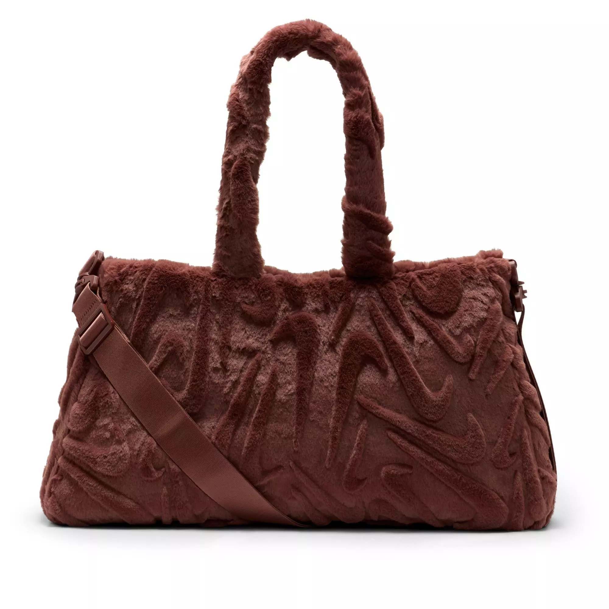 The Nike Sportswear Faux Fur Tote Bag features dual handles and an adjustable shoulder strap so you can carry it at your side or over your shoulder. Soft maroon faux fur dresses up any outfit while the spacious interior keeps personal items secure and accessible.