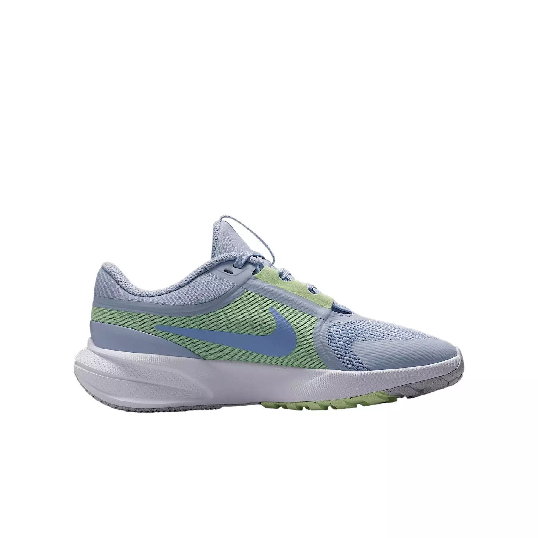 The Nike Star Runner 5 "Ghost/Barely Volt/Football Grey/Light Thistle" Grade School Girls' Running Shoe uses breathable mesh and a lightweight build. It delivers springy cushioning and a secure, stabilizing fit that supports every stride.