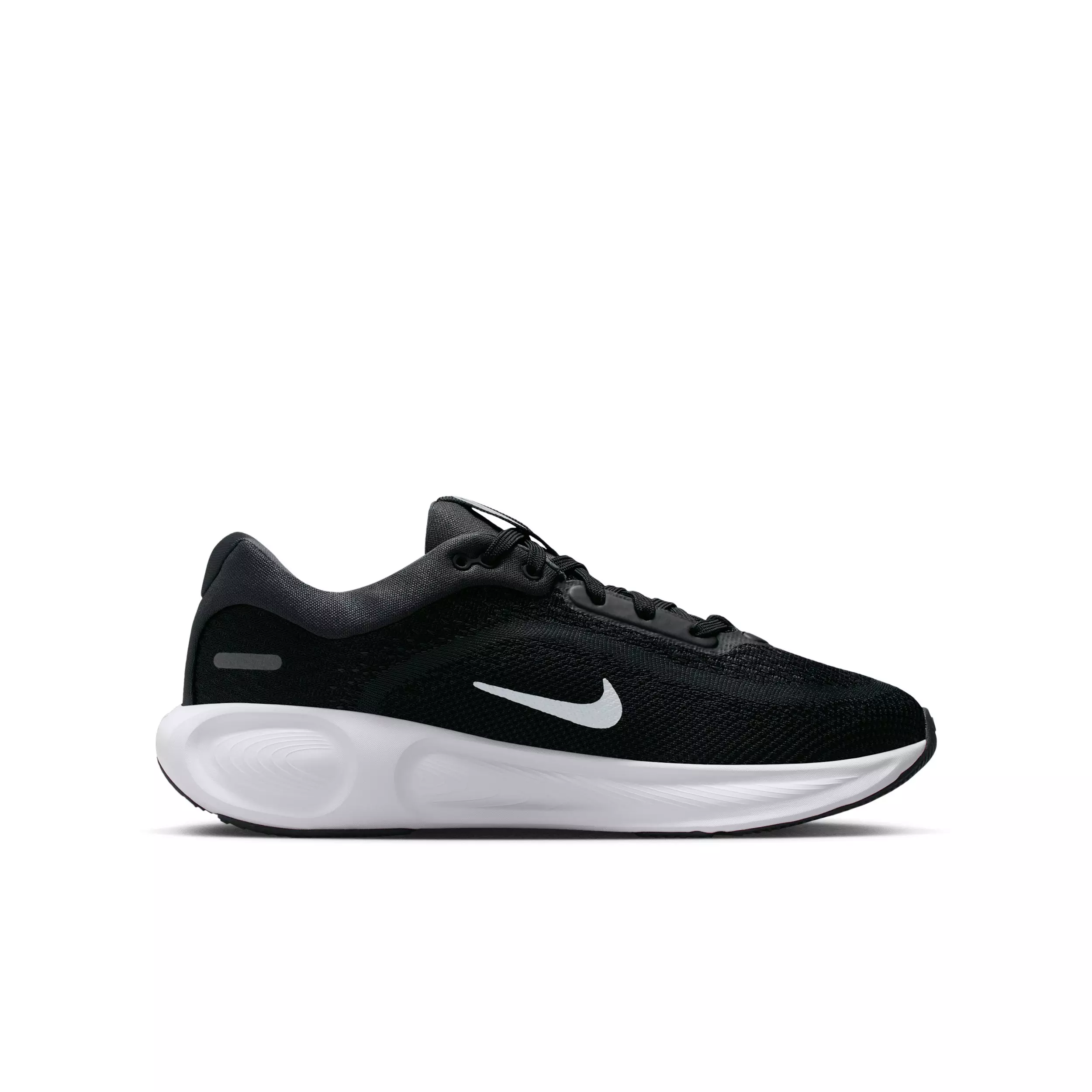 Nike Stellar Ride "Black/Anthracite/Pure Platinum/White" Grade School Boys' Running Shoe a thick stack of soft and responsive ComfiRide foam the Nike Stellar Ride is built for the long run. Mesh up top provides the breathability you need to go the distance. A padded low-cut collar gives you a plush premium fit. Lace up and find your stride no matter the distance.Features