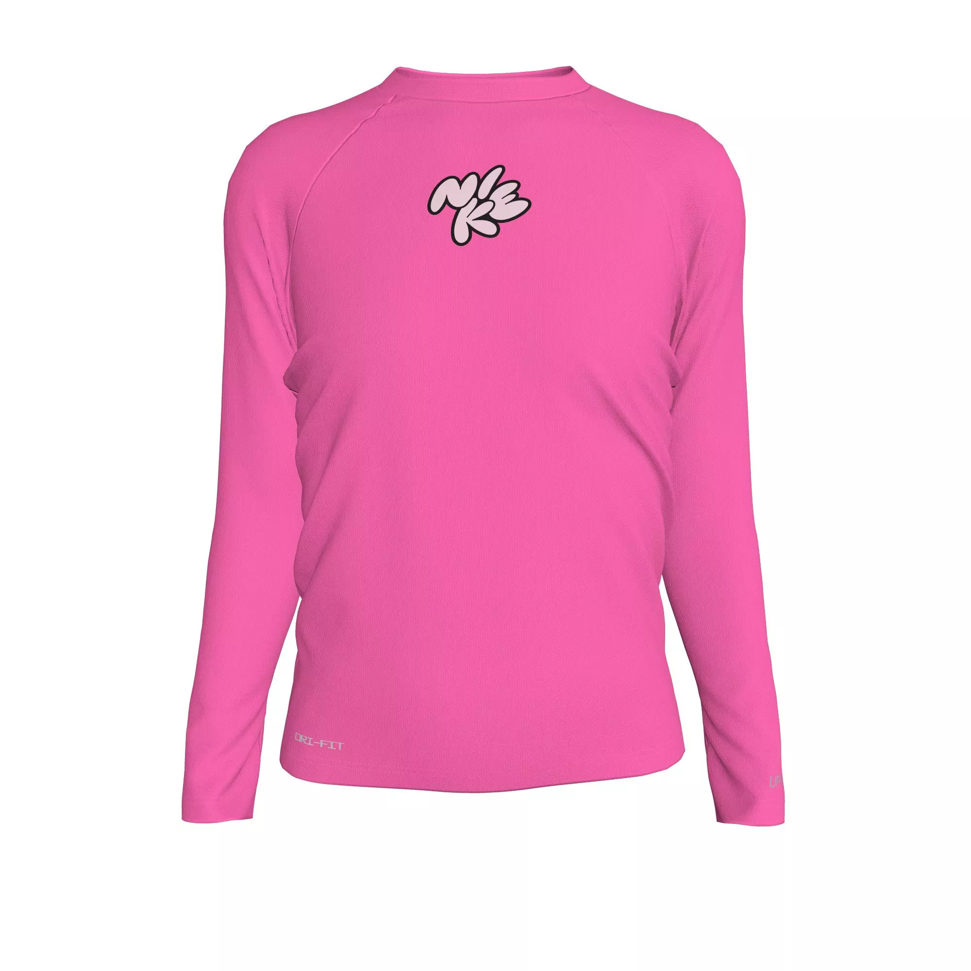 Keep her protected and comfortable in the Nike Swim Big Girls' Bubble Charms Long Sleeve Hydroguard Shirt. Built with Dri-FIT technology, it wicks sweat for a dry, easy feel during long days by the water.