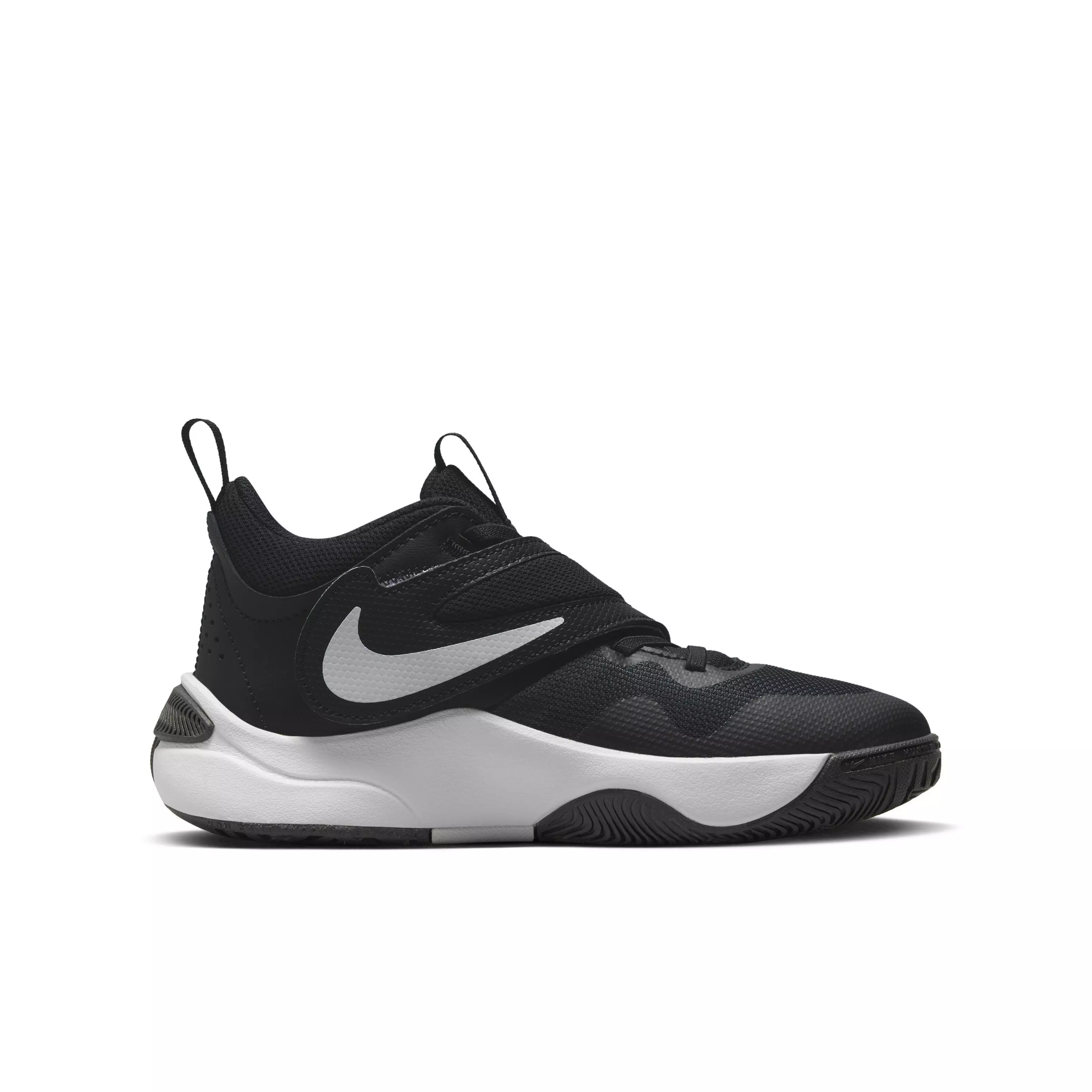 The Nike Team Hustle D 11 "Black/White" Grade School Boys' Basketball Shoe continues the legacy of the Team Hustle D series with a design built for active kids. It emphasizes quick entry with an easy hook-and-loop strap that simplifies on-and-off wear while securing the fit. Durable materials and supportive construction make this shoe reliable for both gym class and outdoor play, providing stability through every jump, sprint, and pivot.
