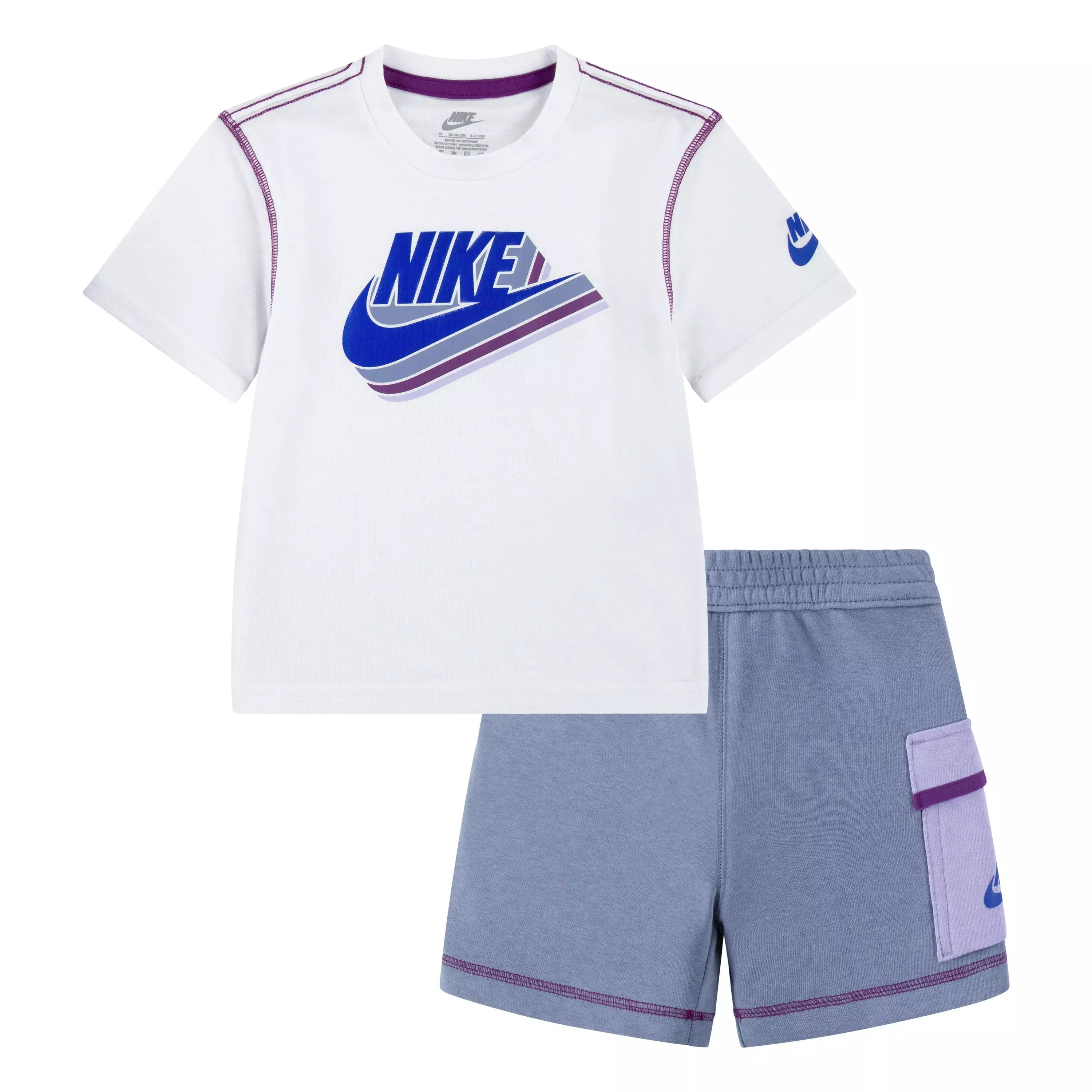 Smaller athletes can live the life in this Nike Toddler Boys' ReImagine Short Set, engineered for play. The tee is made of jersey knit fabric that feels smooth, the tagless crewneck has an easy feel and the matching shorts are made of soft French terry knit fabric the stretch waistband provides a comfy fit during every run, skip and step.Features
