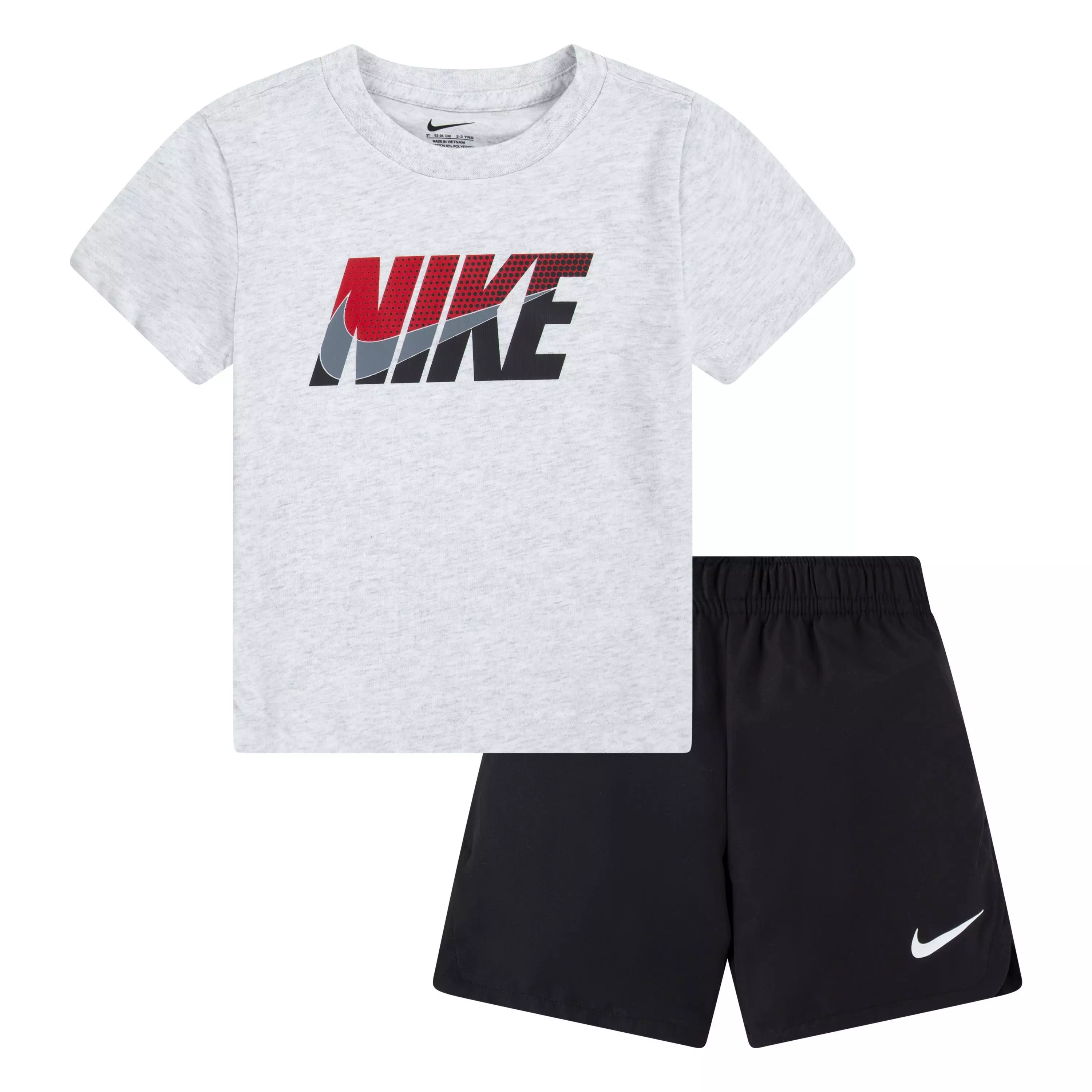The Nike Toddler Boys' Woven Short Set offers smooth jersey knit in the tee and a tagless crewneck that delivers easy wear. Soft French terry knit shorts include a stretch waistband that provides a comfy, secure fit during every run, skip and step.