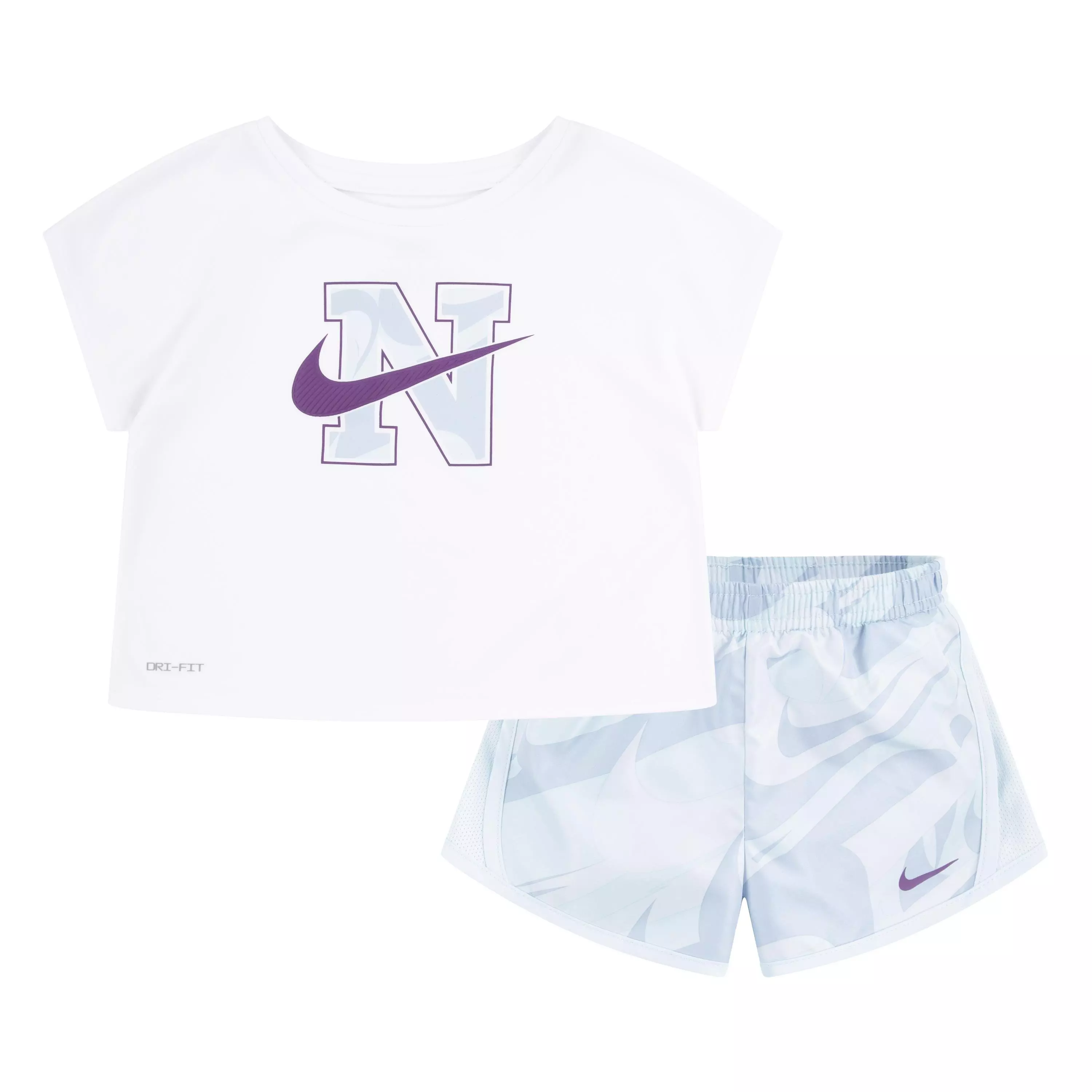 The Nike Toddler Girls' Tempo Ruffle 2-Piece Set uses quick-drying, moisture-wicking Dri-FIT technology to keep toddlers cool and dry while they play.