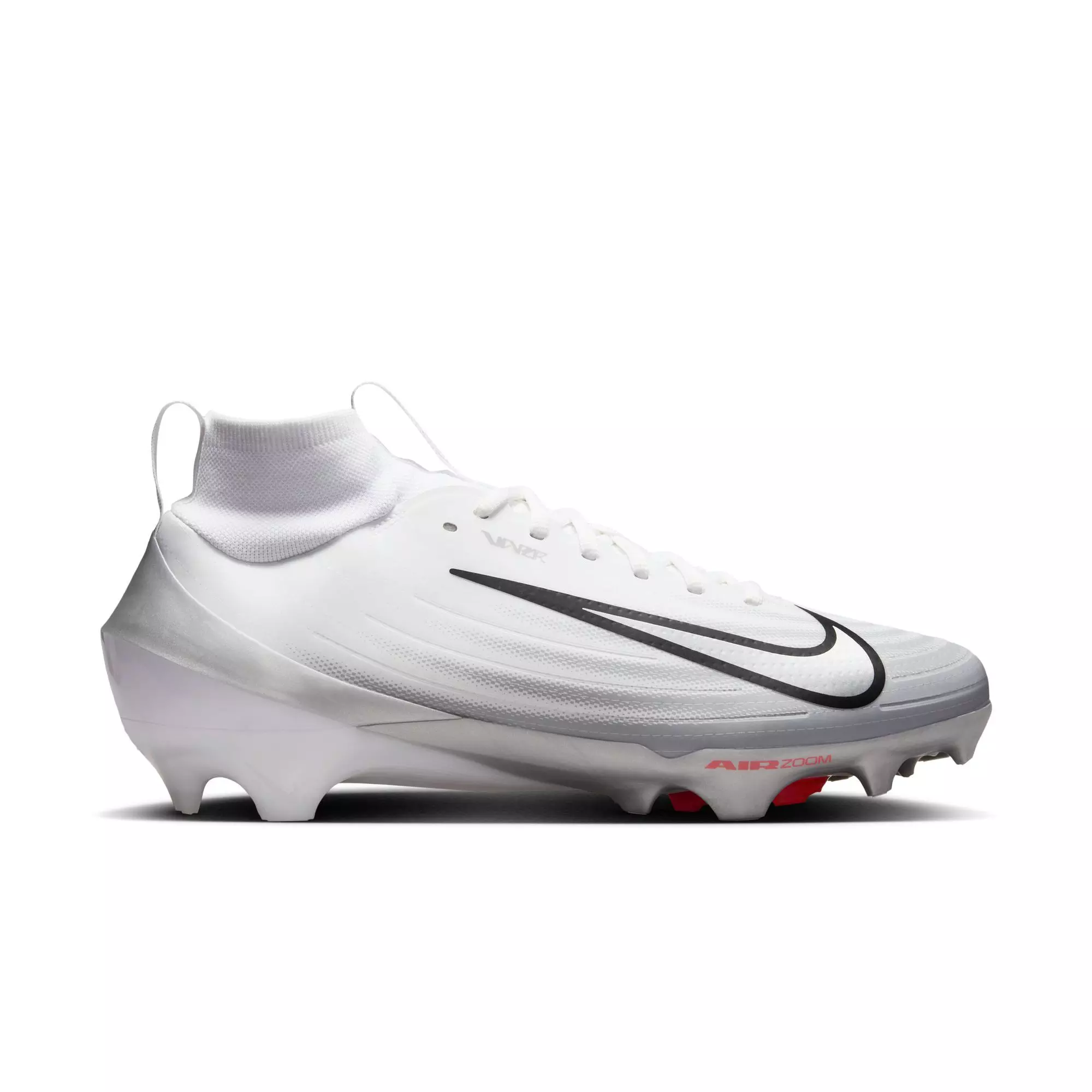 Burst off the line of scrimmage with responsive Air Zoom cushioning in the Nike Vapor Pro 1 "White/Metallic Silver/Black/Summit White" Men's Football Cleat. Lightweight construction and precise fit keep you locked in during every play.