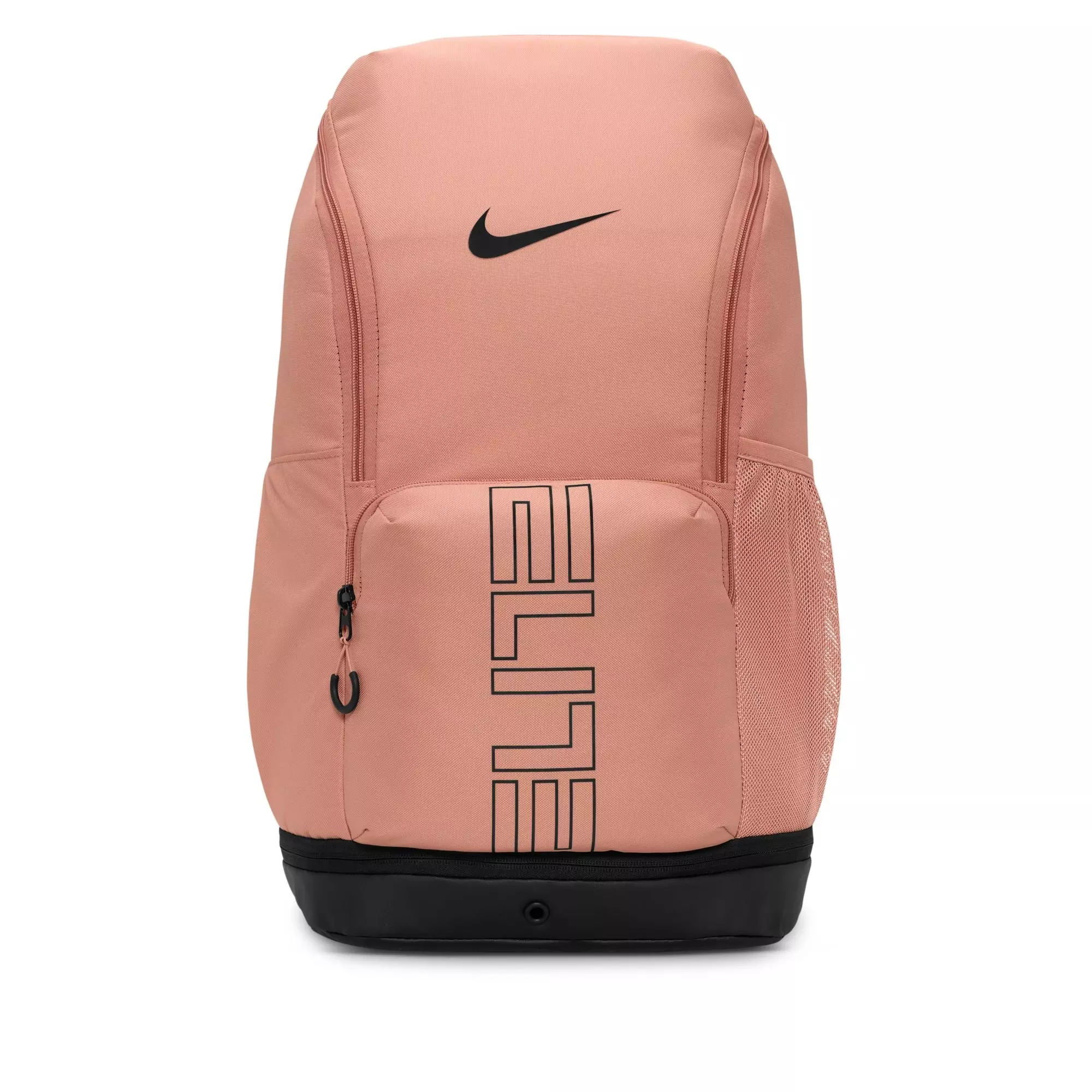 The Nike Varsity Elite Backpack - Rose Gold holds everything you need to hoop with a large main compartment that fits a full-size basketball and secures items during transit on courts or gym trips.