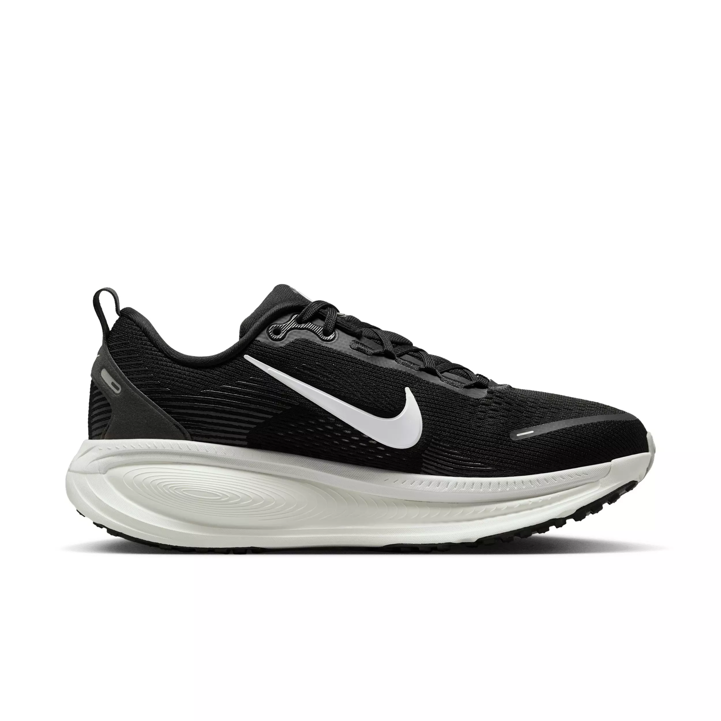 Maximum cushioning in the Nike Vomero 18 "Black/Coconut Milk/Light Iron Ore/Summit White" Women's Running Shoe provides a comfortable ride for everyday runs. Our softest, most cushioned ride has lightweight ZoomX foam stacked on top of responsive ReactX foam in the midsole. Plus, a redesigned traction pattern offers a smooth heel-to-toe transition.Features