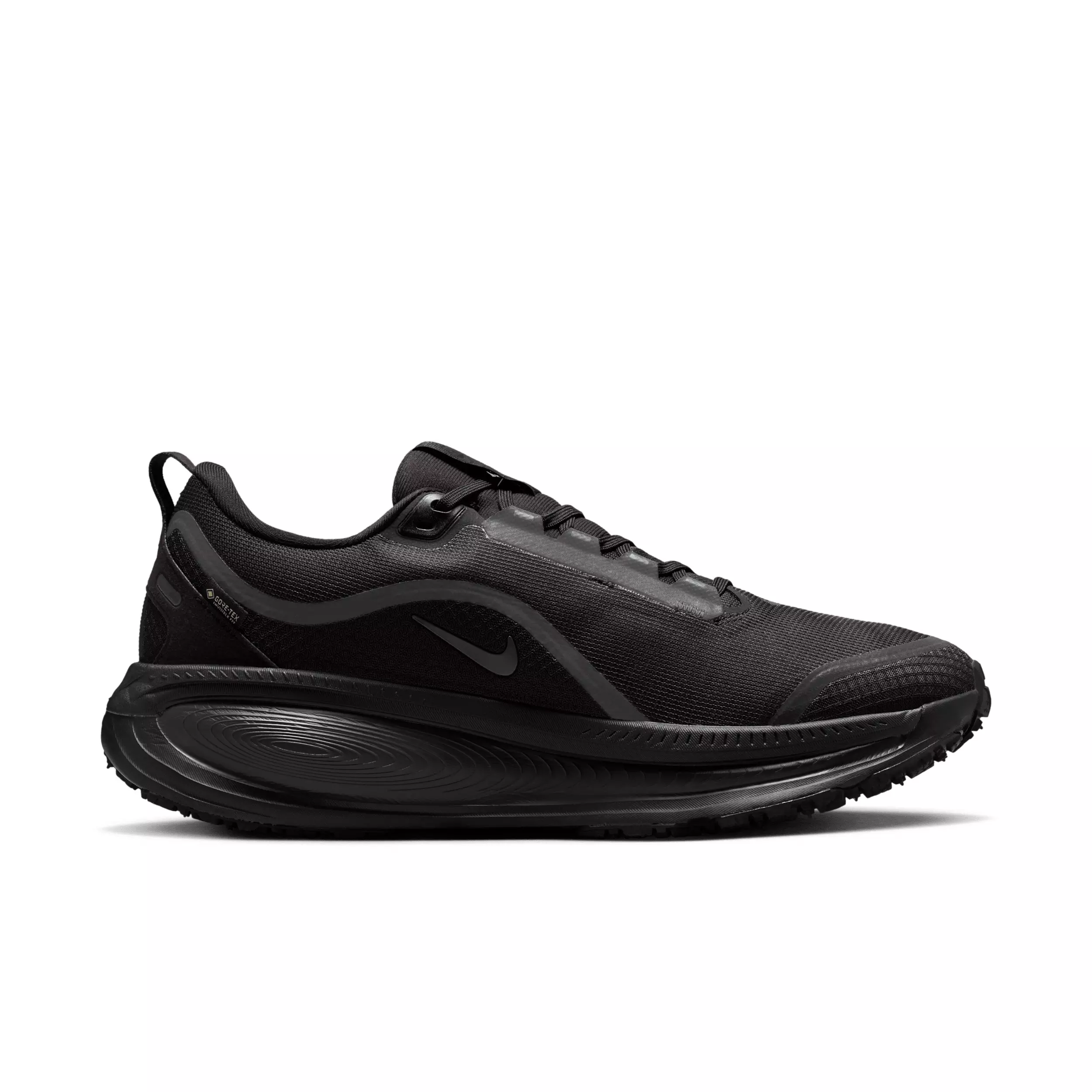 Maximum cushioning in the winterized Nike Vomero 18 GORE-TEX "Black/Anthracite" Men's Running Shoe delivers a comfortable ride for rainy road runs. Experience optimal comfort with lightweight ZoomX foam stacked on top of responsive ReactX foam in the midsole. Plus, a waterproof GORE-TEX upper and reflective details throughout help you comfortably take on the elements.Features