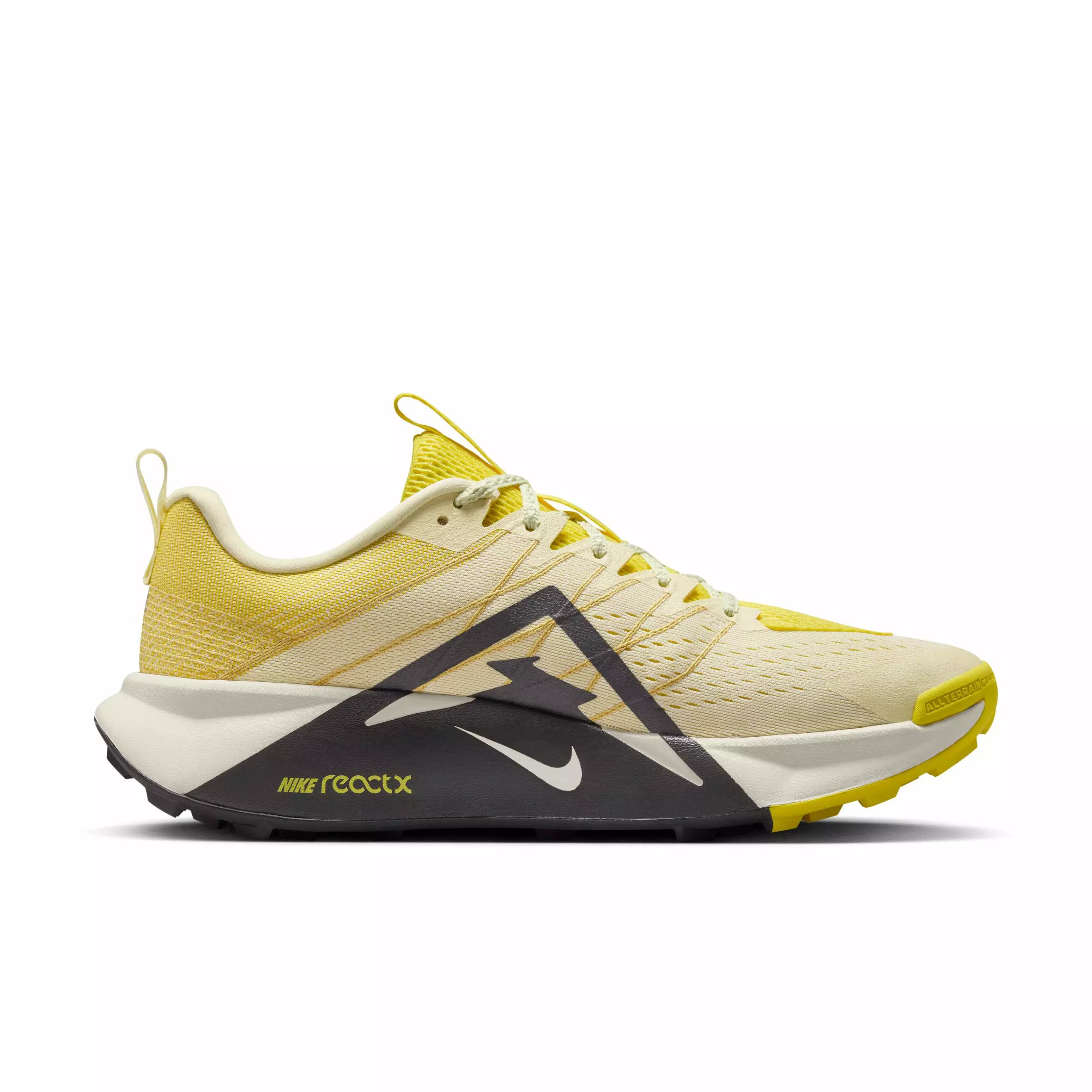 Roam favorite trails and tackle technical routes in the Nike Wildhorse 10 "Alabaster/Lightning/Saturn Gold/Medium Ash" Men's Trail Running Shoe. This model upgrades the previous Wildhorse midsole with responsive ReactX foam to cushion each step and deliver energetic rebound. Its midsole balances cushioning and rebound on varied surfaces.