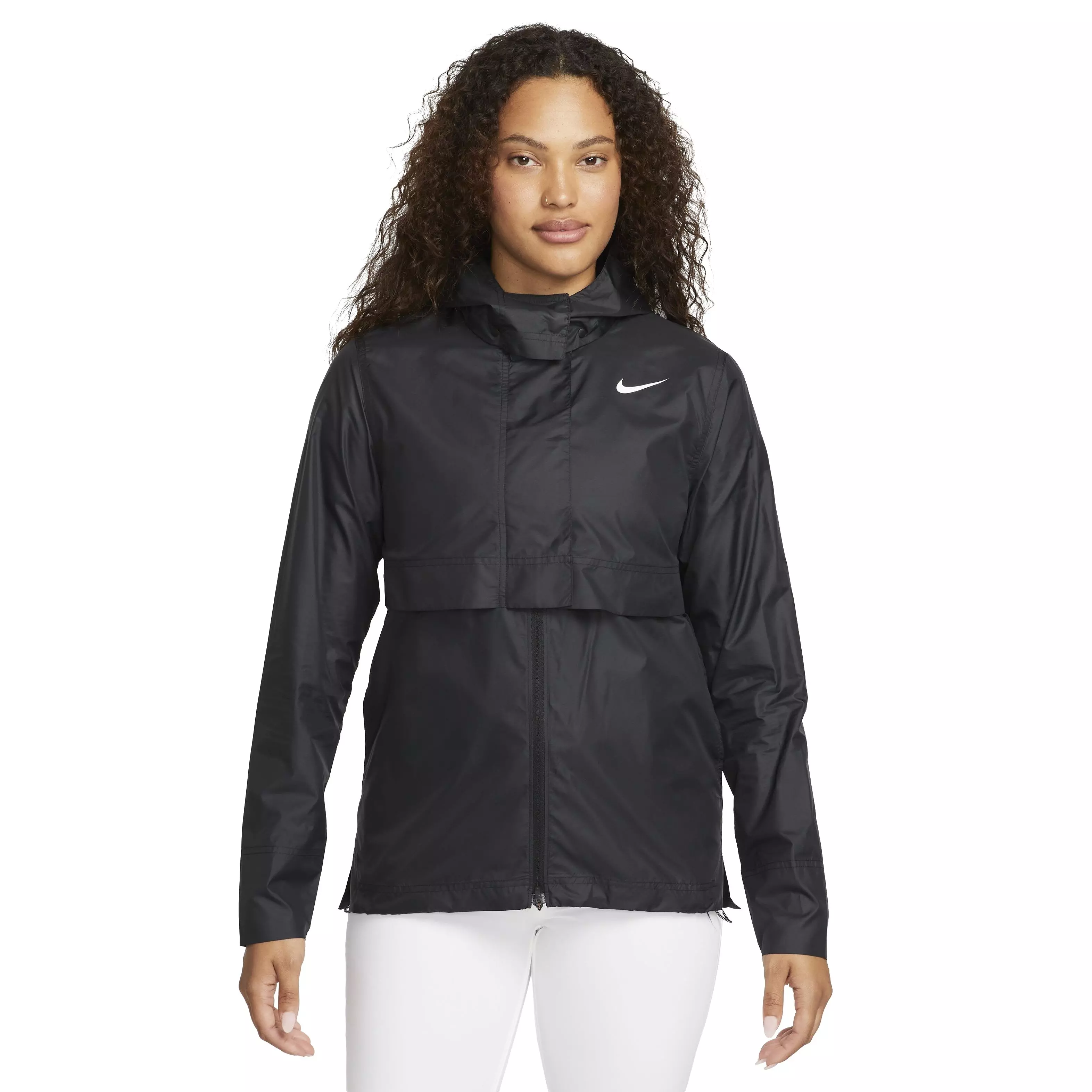 Don't let a little rain force you off the green. With a fully removable hood and water-repellent fabric, this black Nike Women's​ Tour Repel Golf Jacket helps keep you ready to take on changing conditions. The 2-way zipper and adjustable bungee at the hem allow you to to personalize your fit so you can keep swinging naturally.