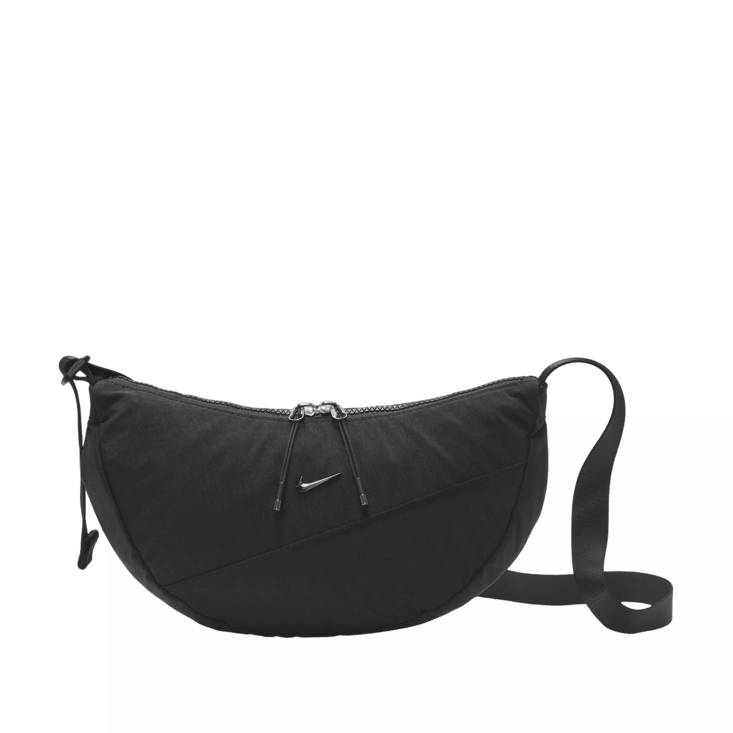 Streamline your carry with the Nike Women's Aura Crescent Crossbody Bag - Black. Its curved silhouette sits comfortably across the body, while the secure main compartment offers quick access to on-the-go essentials. Interior slip pockets keep cards, keys, and small tech neatly sorted.An adjustable strap customizes your fit for errands, travel, or nights out. Durable construction holds up to daily wear, and the low-profile design pairs effortlessly with casual or sporty looks. Lightweight and easy to pack, it delivers hands-free convenience without bulk.