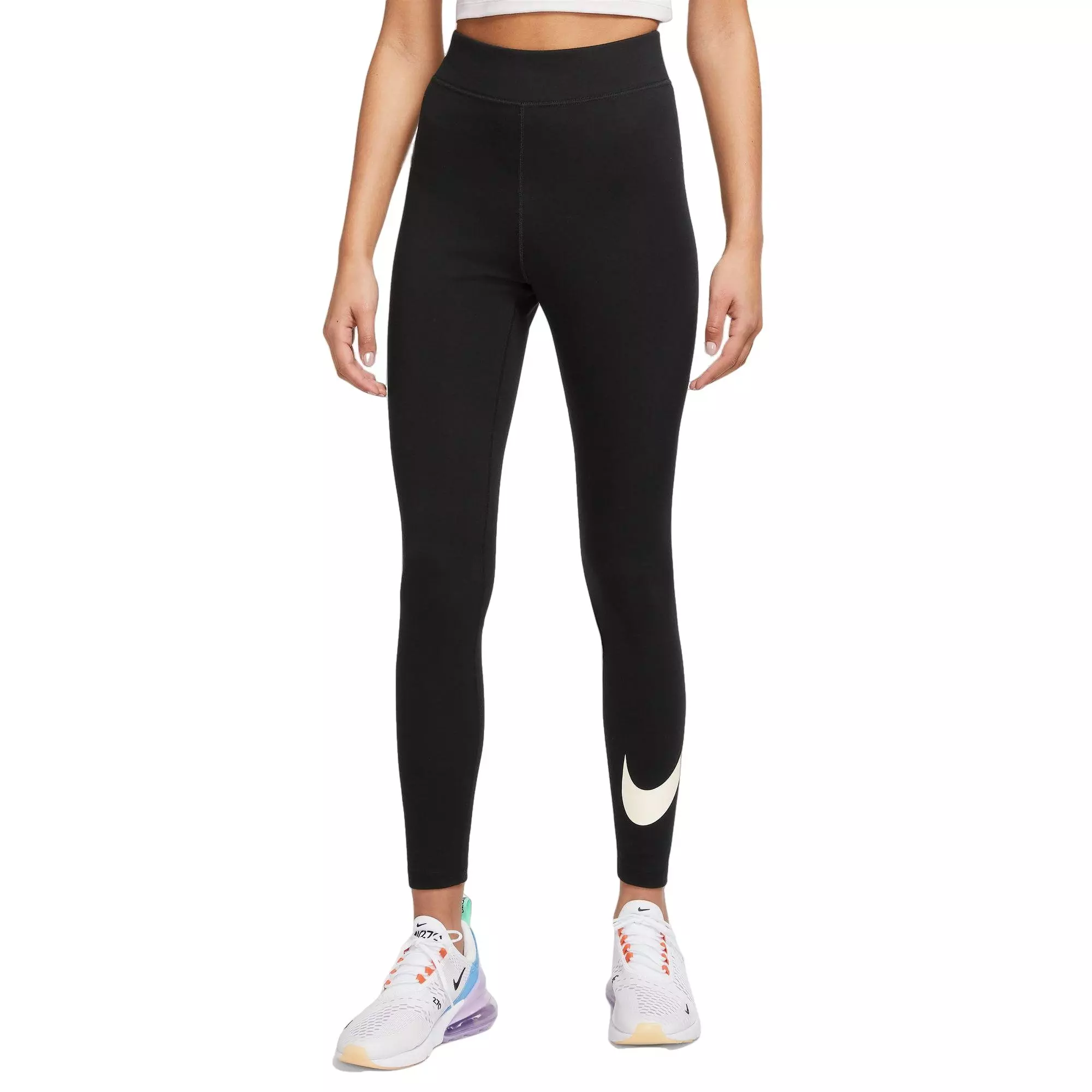 More durable, less sheer and designed to be twice as stretchy as our previous Essentials leggings: we've remixed the daily legging. Designed to support you from one task to the next, our Nike Women's Classic High-Rise Swoosh Leggings - Black are made from a blend of recycled fibers and spandex. Thick but still lightweight, peachy-soft but still strong, they stretch easily with your every move. In two words, they're better.