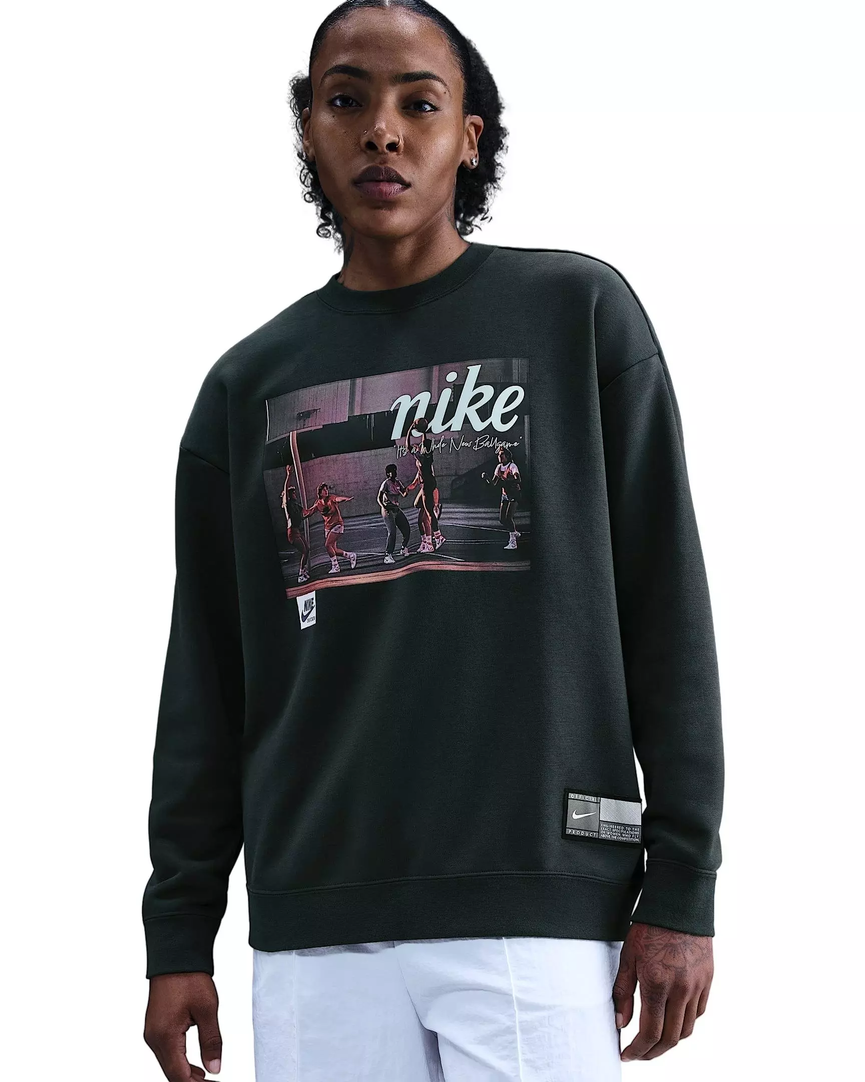 Layer up in easygoing comfort with the Nike Women’s Club Fleece Loose Crew in Seaweed Green. The relaxed silhouette pairs effortlessly with leggings or jeans, while ribbed cuffs and hem help keep the shape. Soft fleece delivers cozy warmth for daily wear without feeling heavy. Designed for simple styling, this crew features a classic neckline and clean finish that moves from lounge to out-and-about with ease. Wear it on its own or over your favorite tee for year-round comfort and a timeless, laid-back look.
