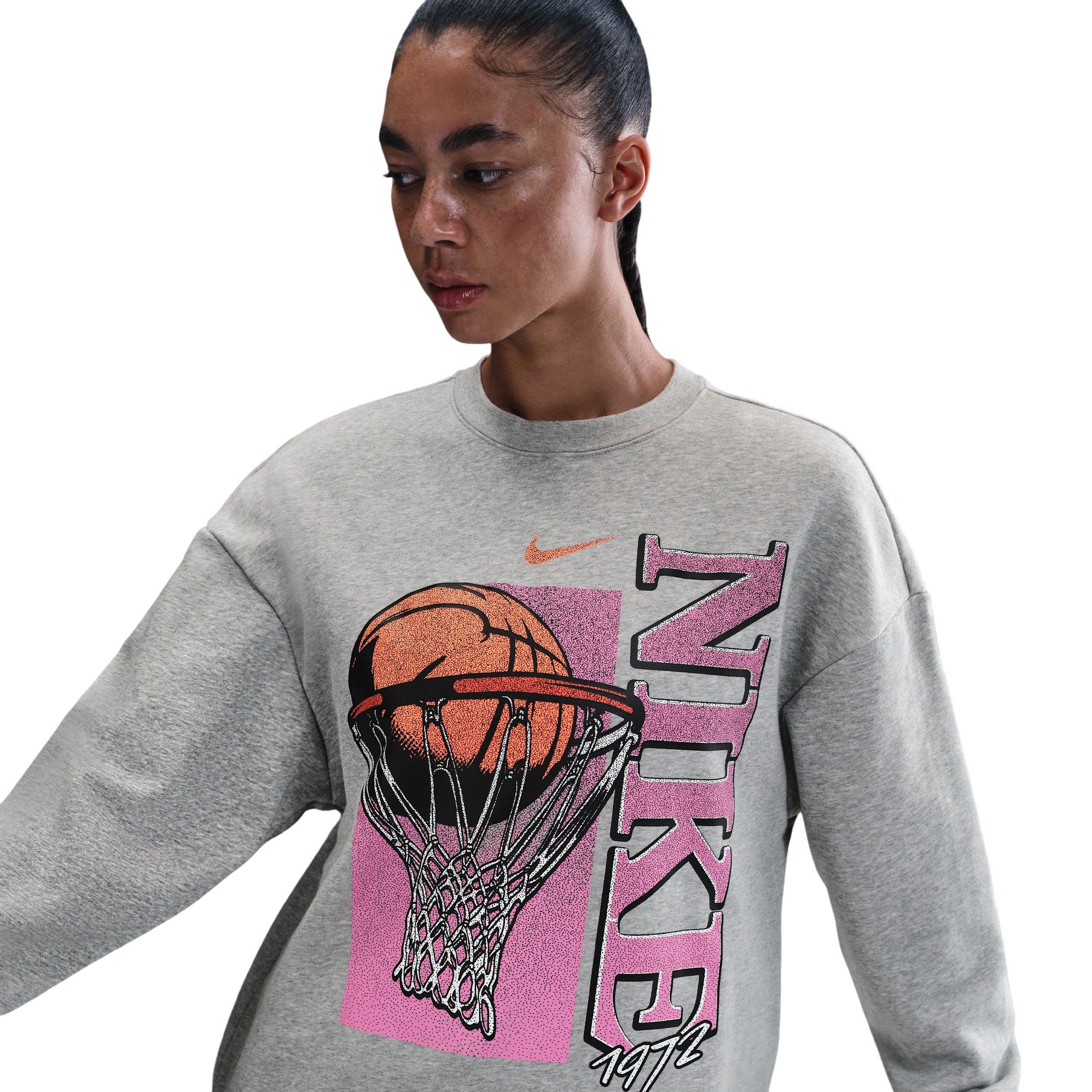 The ball dropping through the rim and nestling in the net. This nostalgic smooth and slightly fuzzy grey Nike Women's Club Fleece Loose Crew honors that generational good-for-the-soul sight for sore eyes.Features