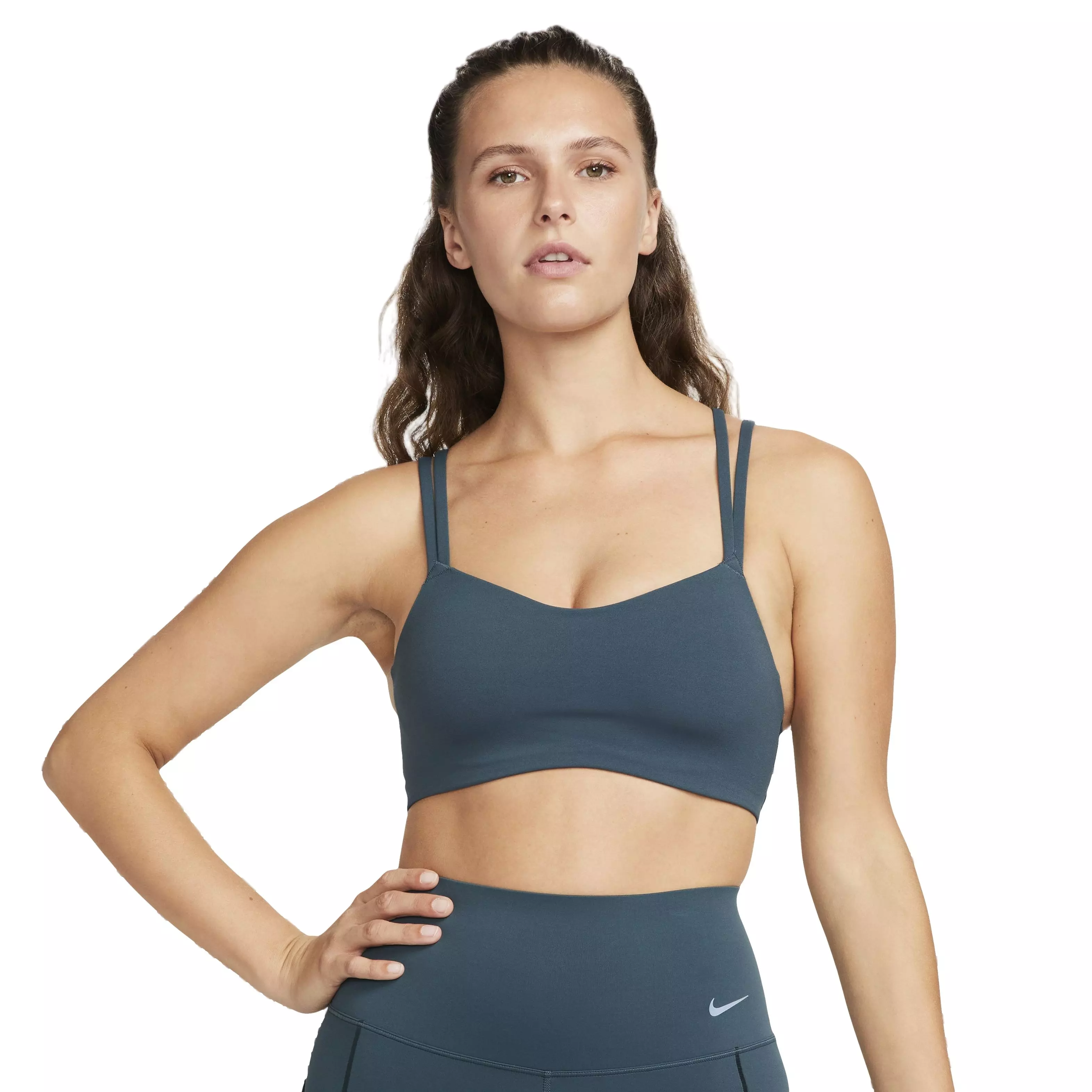 The Nike Women's Dri-FIT Alate Trace Light Support Padded Strappy Sports Bra features a sewn-in one-piece pad that offers enhanced shaping and secure coverage. Dri-FIT technology wicks sweat to keep you cool and comfortable.