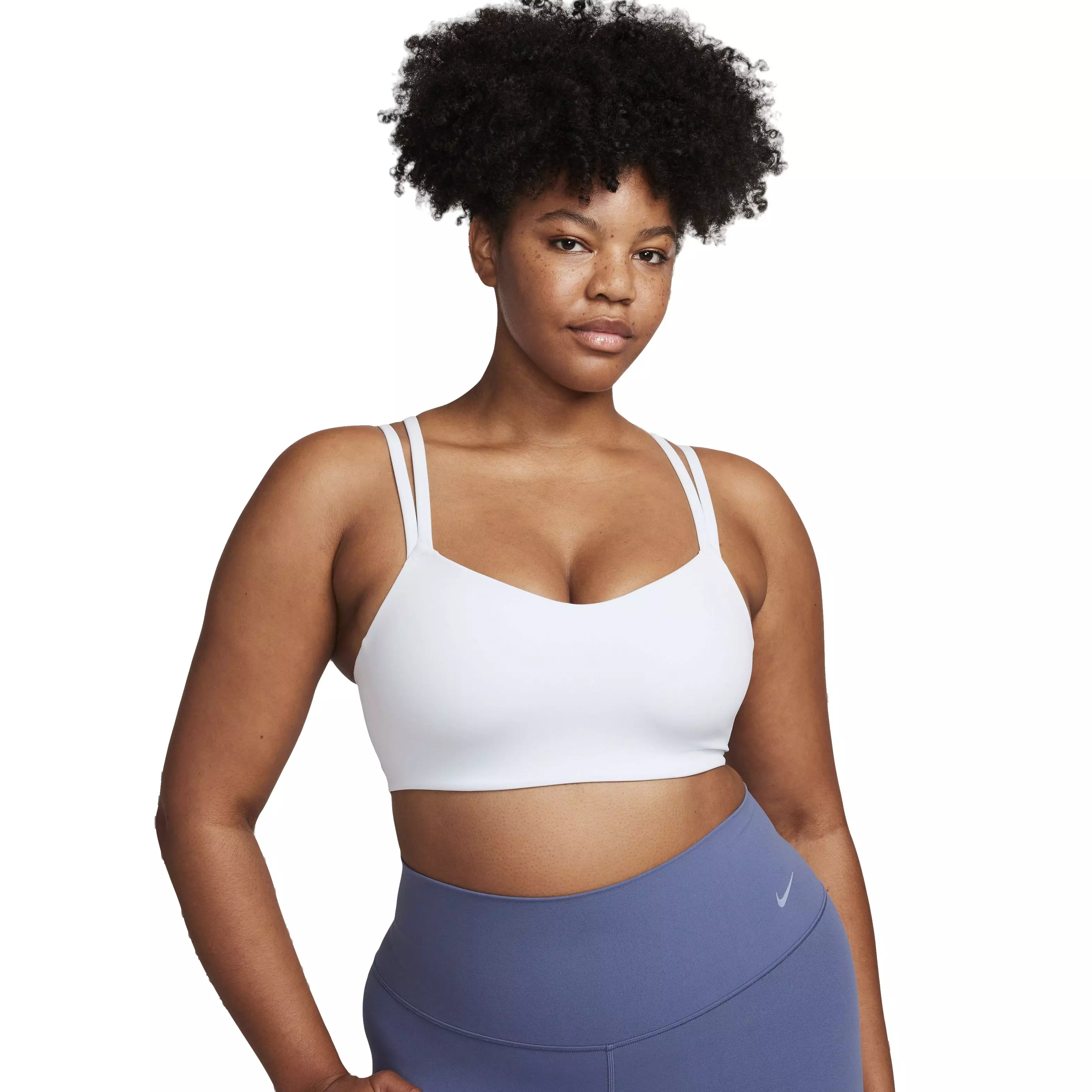 The Nike Women's Dri-FIT Alate Trace Light Support Padded Strappy Sports Bra features a sewn-in one-piece pad that offers enhanced shaping and secure coverage. Dri-FIT technology wicks sweat to keep you cool and comfortable.