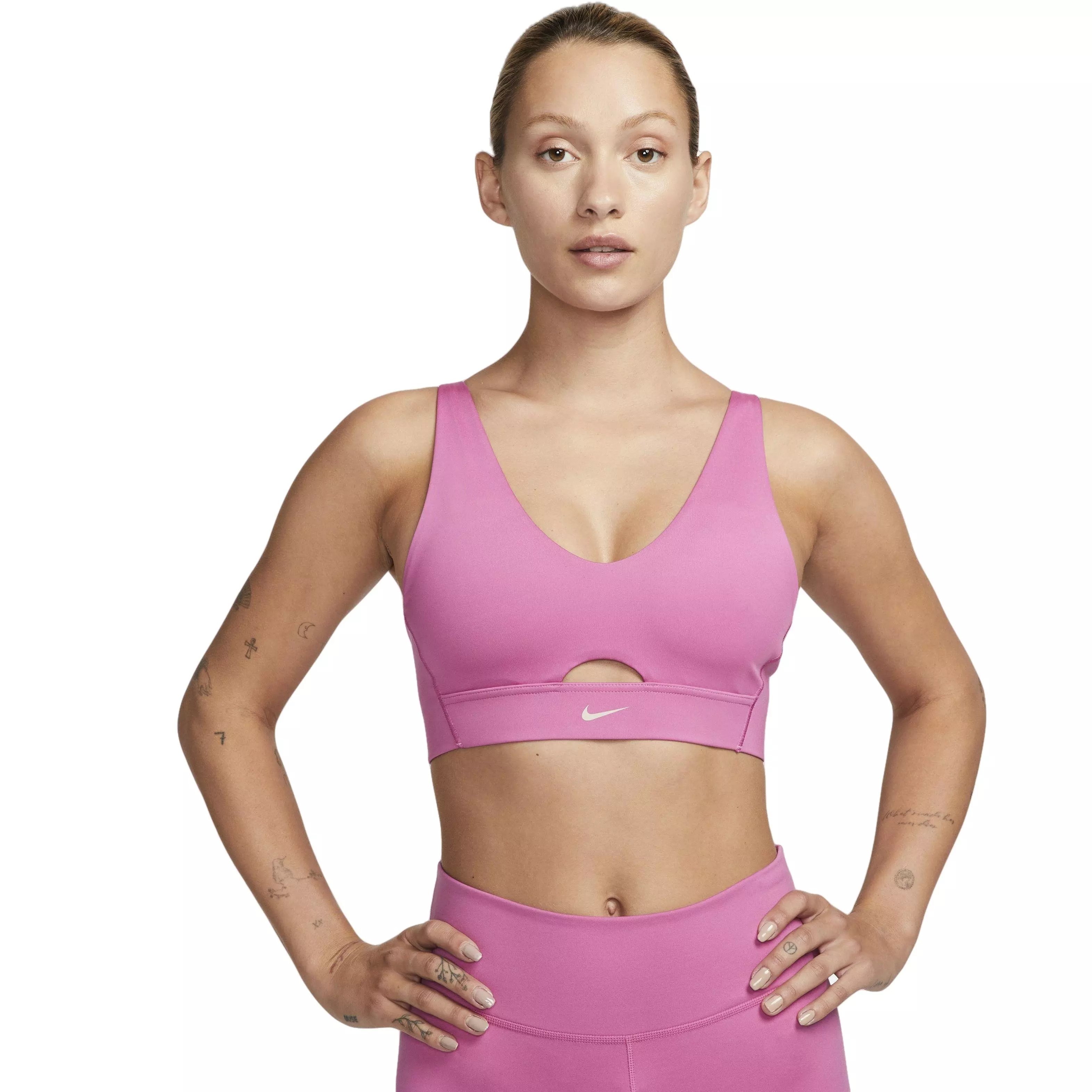 The Nike Women's Dri-FIT Indy Padded Plunge Cutout Sports Bra gives you medium support during daily workouts, errands or chill days at home. With sweat-wicking fabric, adjustable and convertible straps, and a plunge neckline, you'll stay comfortable and confident no matter what your day throws your way.Features