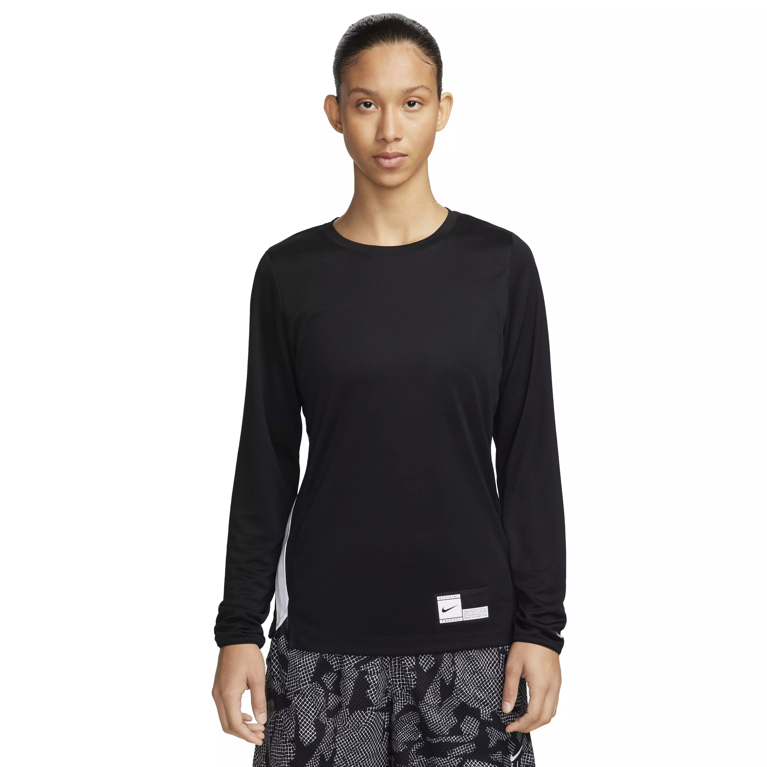 Bring your focus to the basketball court in this sweat-wicking Nike Women's Dri-FIT Long Sleeve Warm-Up Basketball Top. Its lightweight fabric is combined with an easy fit so you can pass and pivot feeling free.Features