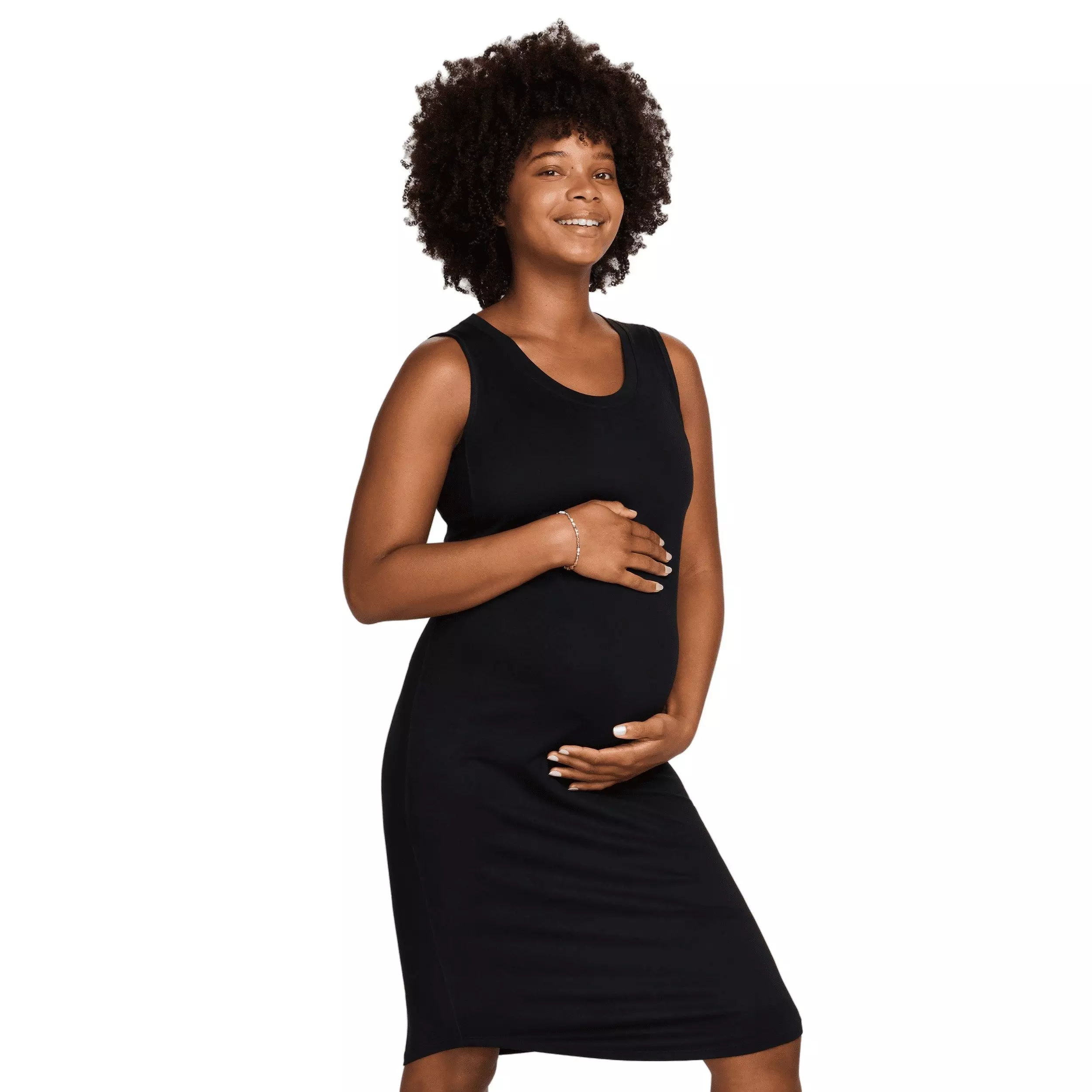 Soft against skin and easy to layer, this black dress moves freely for errands, work, or light activity. Breathable fabric helps manage heat while the minimalist design pairs effortlessly with sneakers or sandals, making it a go-to staple before, during, and after baby.