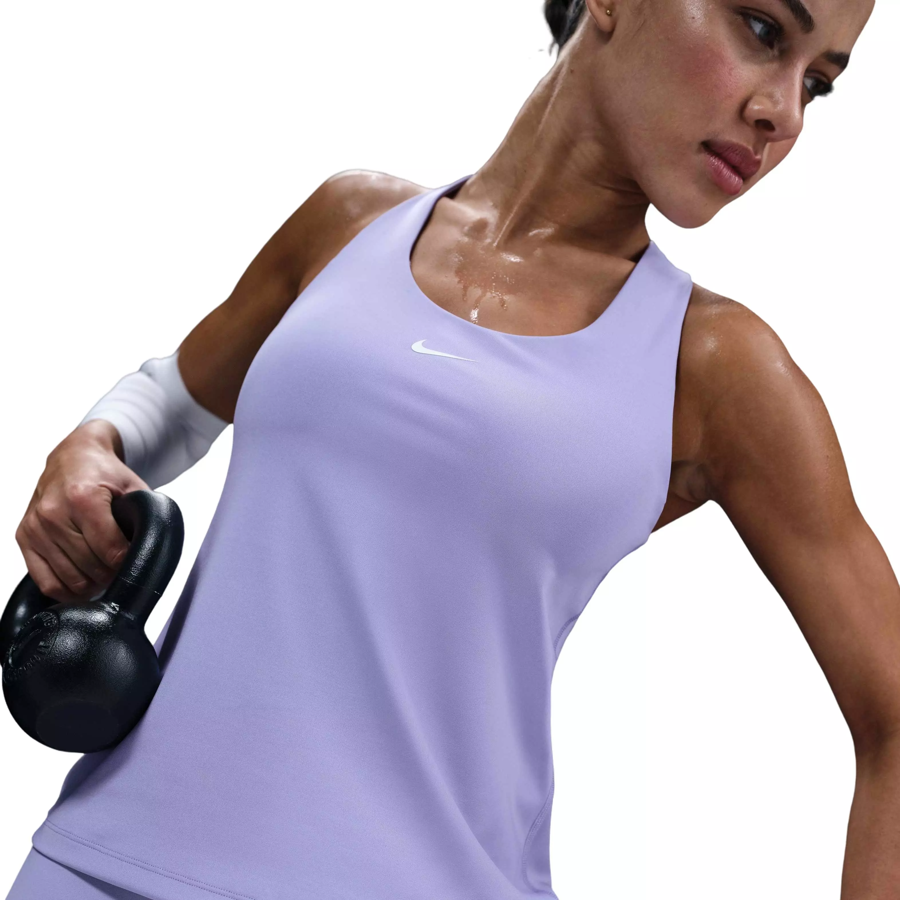 When you want it all, this tank is the pick. This iconic purple Nike Women's Dri-FIT Swoosh Med-Support Padded Sports Bra Tank is built in and smooth, stretchy fabric snuggly holds you, so you're set with everything you need to go from the office to the gym and back again. With sewn-in padding and a racerback silhouette, you can feel confident that nothing is shifting as you go about your day.Features