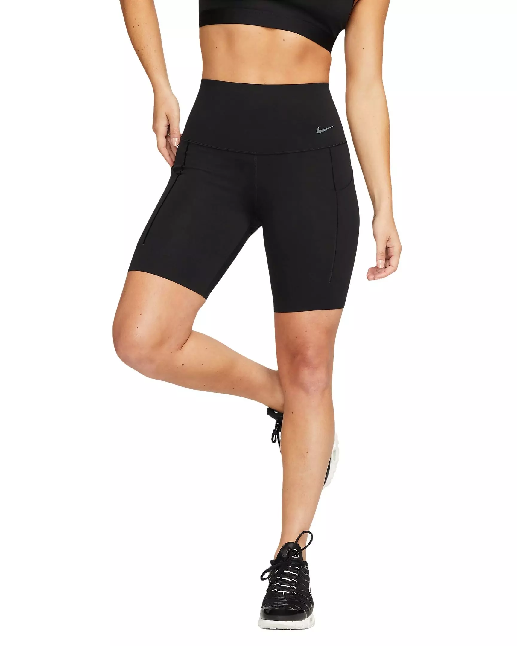 Our Nike Women's Dri-FIT Unisersa HR 8in Shorts help smooth and lift stretching freely with your every move thanks to InfinaSmooth fabric (seriously the smoothing effect is like magic). Plus they're durable enough for you to flex wash and wear again and again. they're the pair you'll reach for whether you need something for your everyday run everyday practice or Just every day.Made for Your Every Move,Our innovative InfinaSmooth fabric gives you continuous uncompromising comfort and Just the right amount of stretch to move with you and support you no matter where your workout takes you.Just the Right Amount of Hold Designed to help reduce rolling pinching and sliding an extra-wide waistband wraps all the way around helping hold you up and smooth the waist.Features
