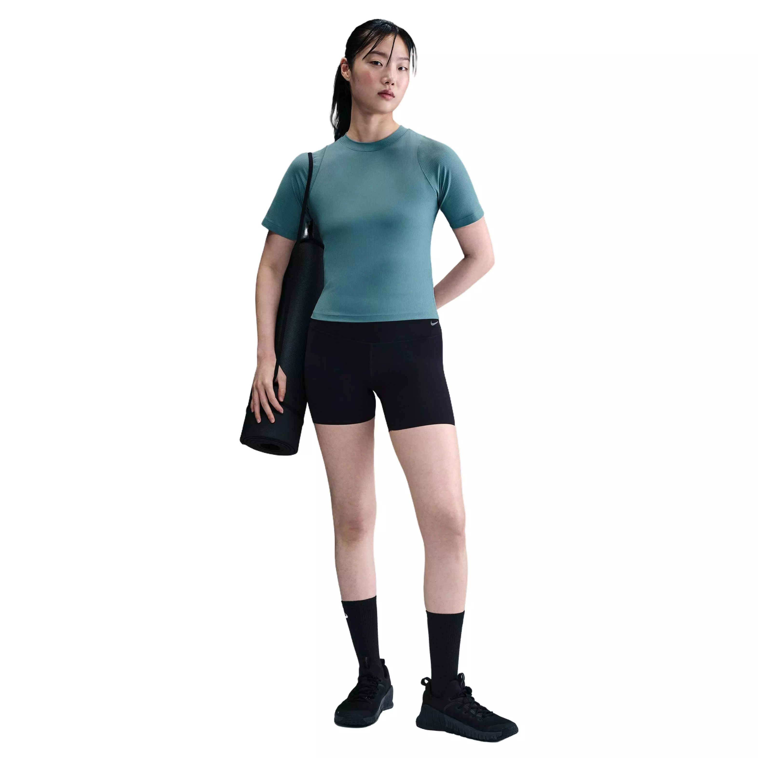 Find easy movement in this slightly cropped, fitted top crafted from ultra-soft InfinaSoft fabric. The wide-rib knit stretches with every bend, while Nike Dri-FIT technology helps wick sweat to keep you dry and focused.