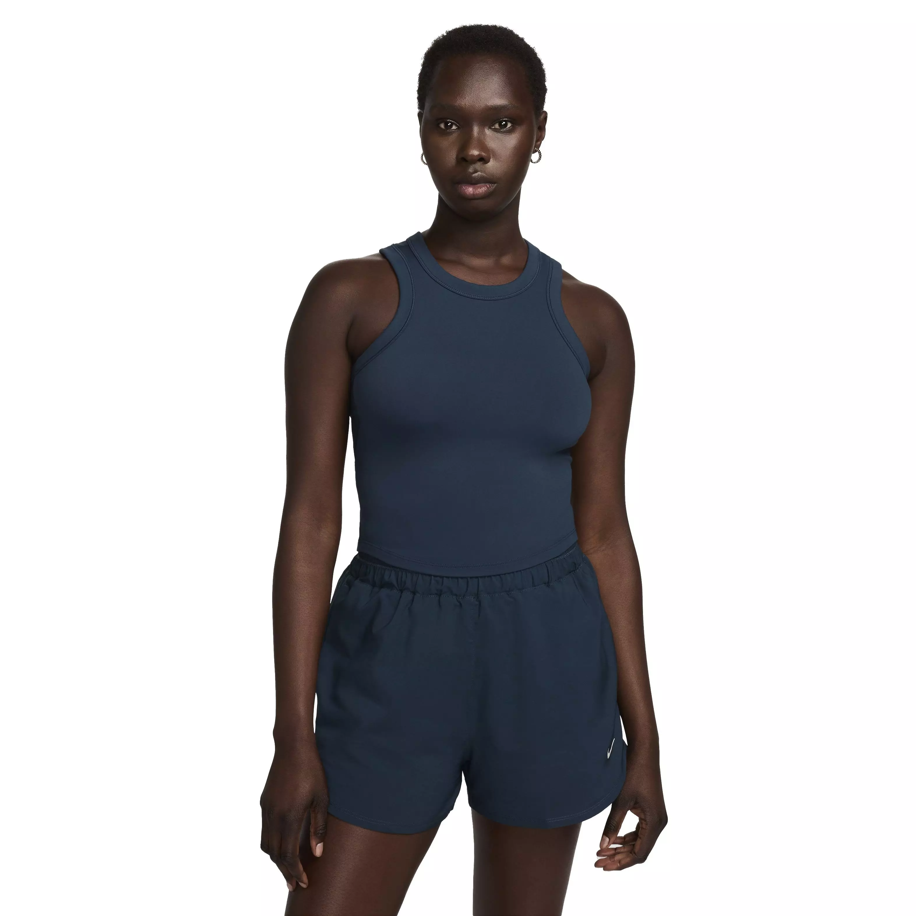 Up for a workout or down to chill, this Nike Women's One Fitted Dri-FIT Cropped Tank Top - Blue is ready for whatever you are. Midweight, peachy-soft fabric stretches with your every move and dries quickly. Slightly cropped and snug, it's ready to meet your favorite high-waisted leggings for a head-to-toe look that you can feel confident and comfortable in from your morning stroll to your evening wind-down—and at all the stops in between.Features