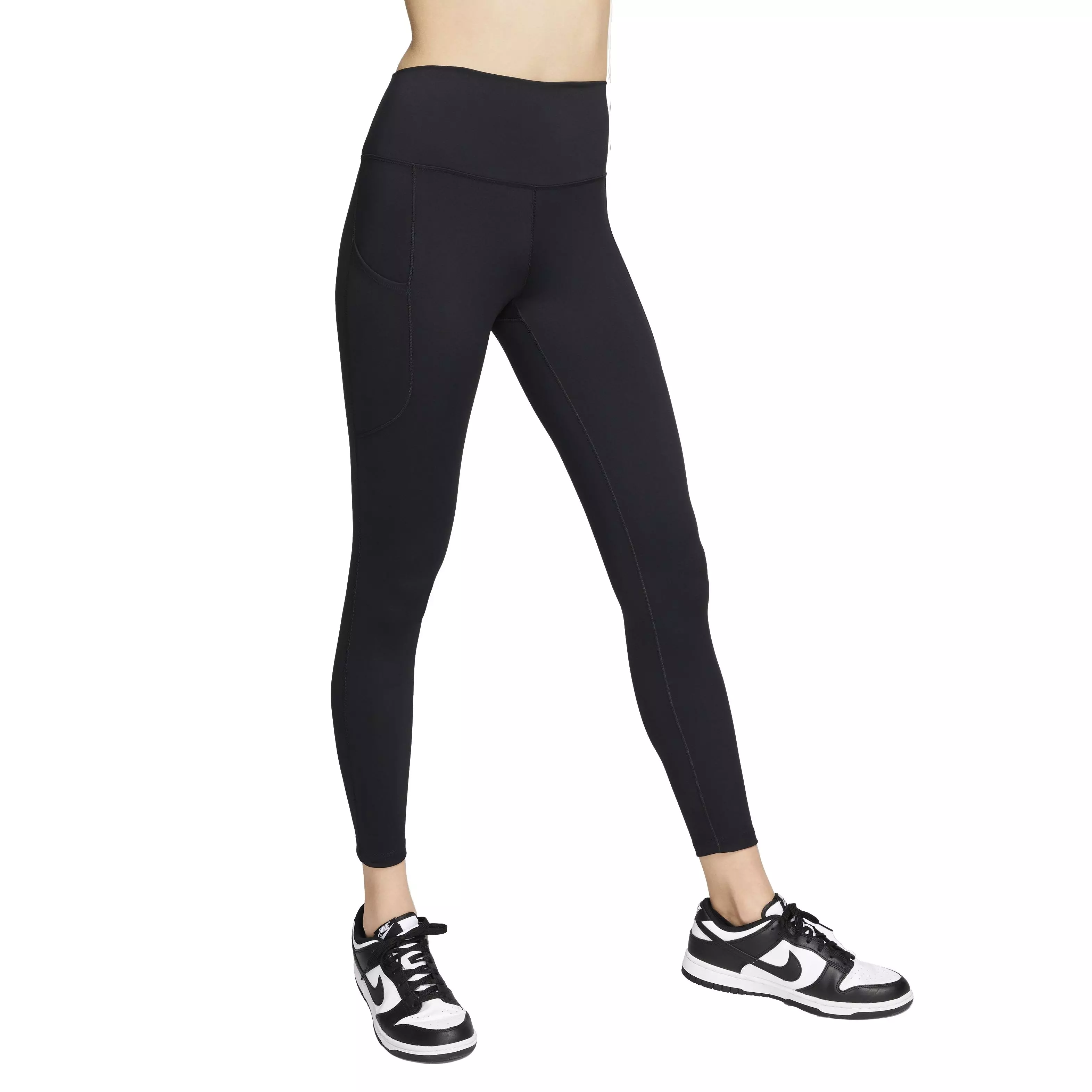 Nike Women's One High-Waisted 7/8 Leggings with Pockets bring versatility to workouts and relaxation. The midweight, peachy-soft fabric stretches with every move and wicks moisture to dry quickly. The 7/8 length hits just above the ankle and highlights sneakers.
