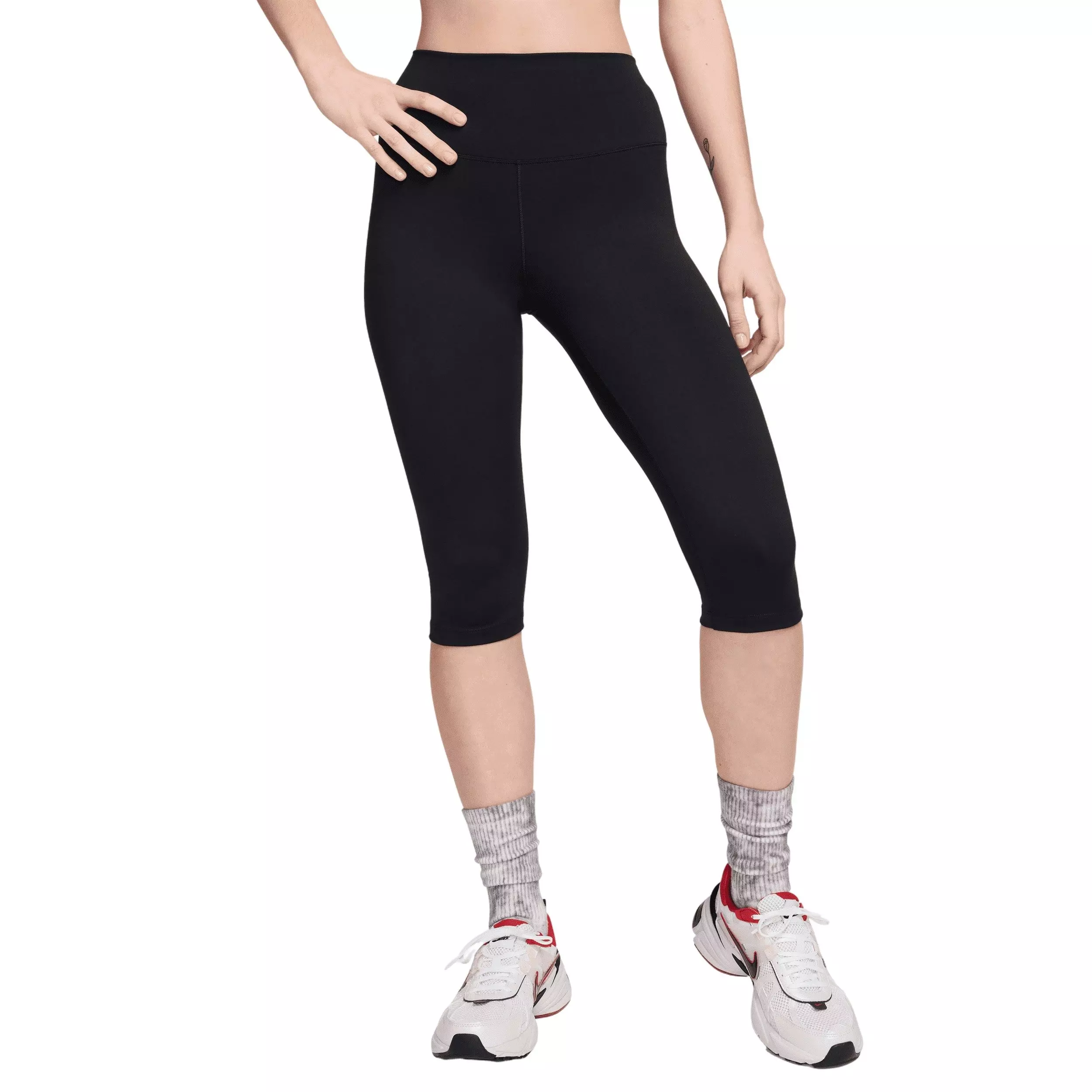 Up for a workout or down to chill, these Nike Women's One High-Waisted Capri Leggings - Black are the Ones that are ready for whatever you are. Their midweight, peachy-soft fabric stretches with your every move and dries quickly. Plus, a high waist is designed to meet your favorite cropped tops for a head-to-toe look that you can feel confident and comfortable in all day long.Features