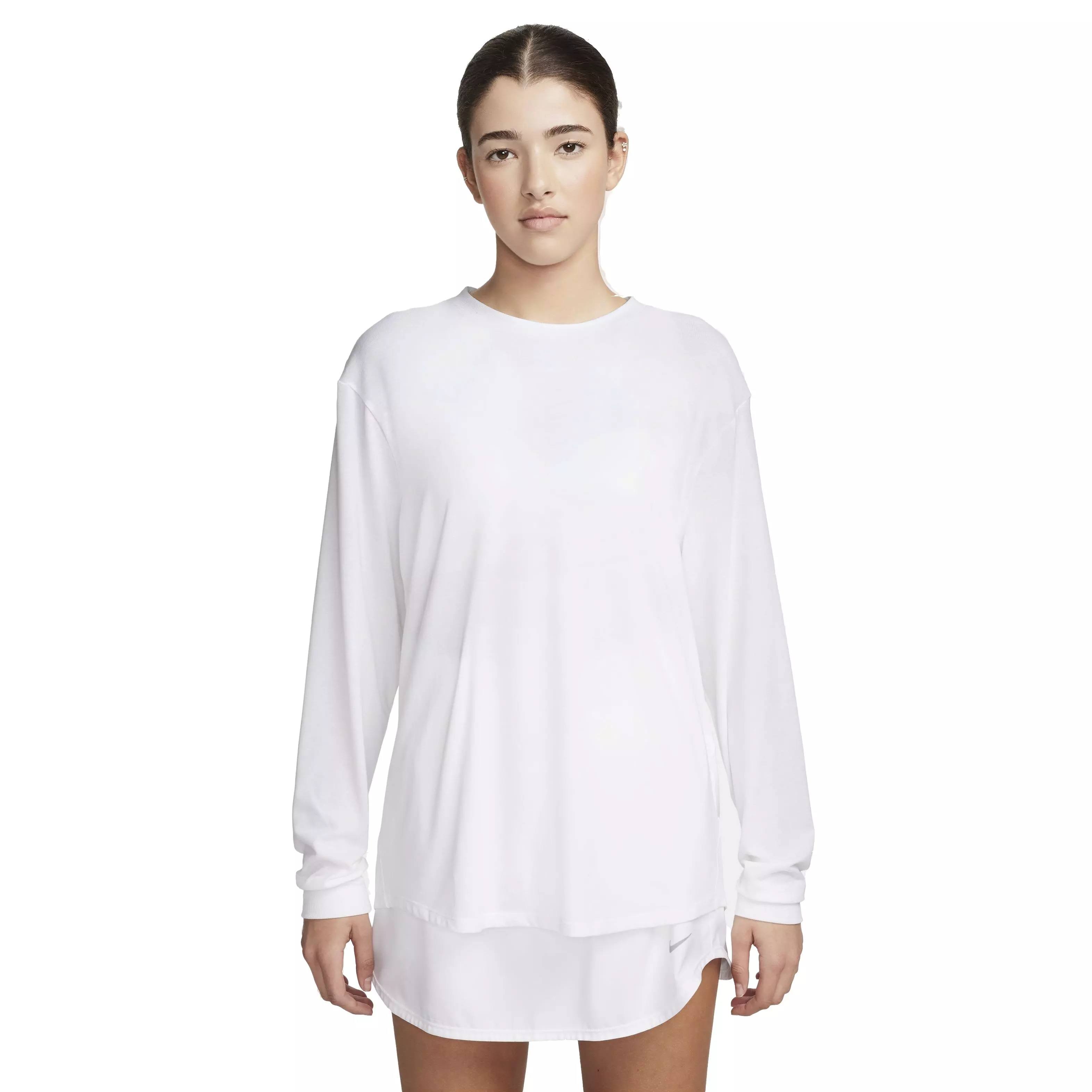 Whether you're tackling a workout or relaxing, the Nike Women's One Relaxed Dri-FIT Long Sleeve Top slips on with ease. Its slightly textured, ultra-lightweight jersey wicks moisture fast and drapes in airy comfort.