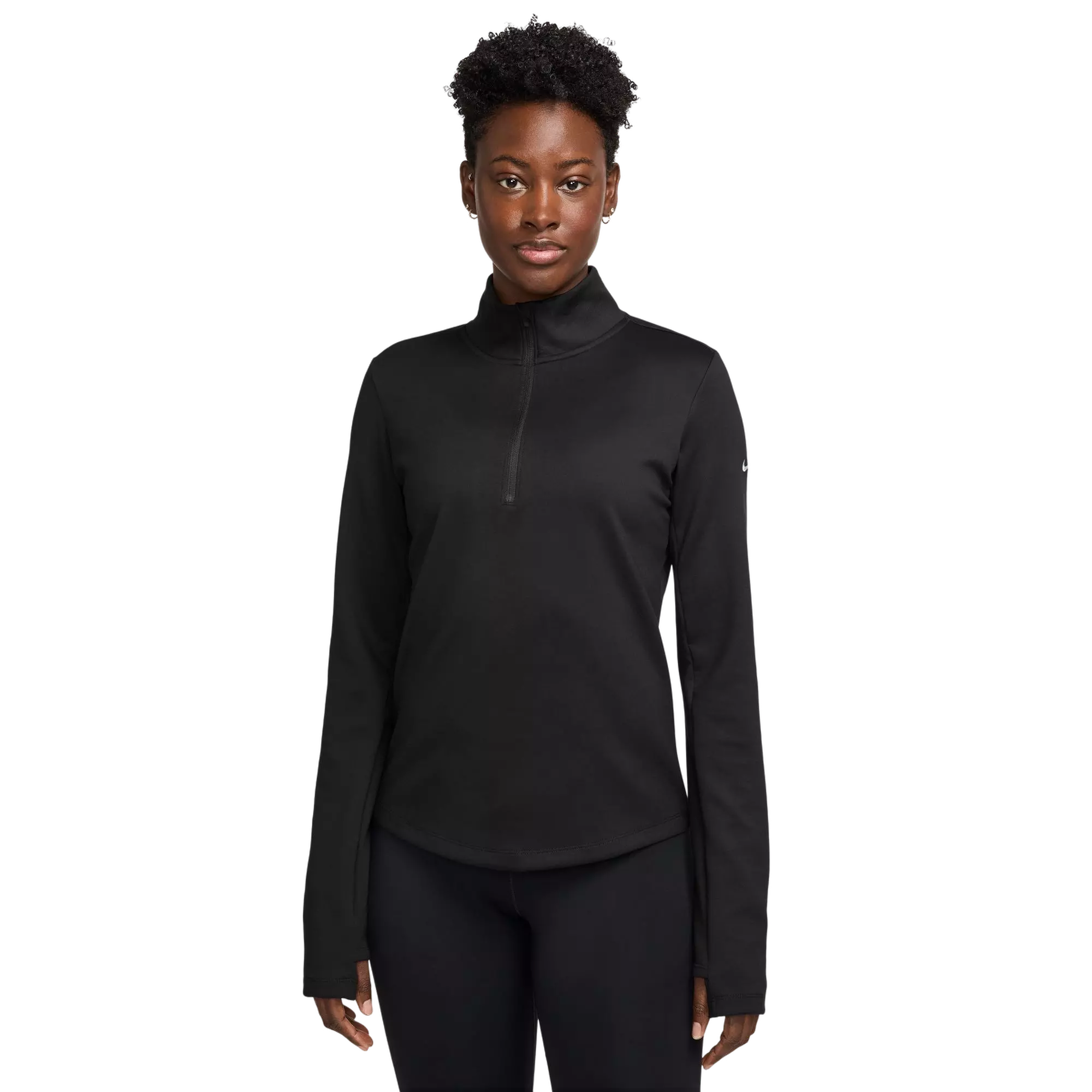 A half-zip design lets you adjust airflow on the run, and thumbholes add extra coverage when temps drop. Layer it over tees or under a shell for training, travel, or everyday wear—comfort that keeps pace with you.