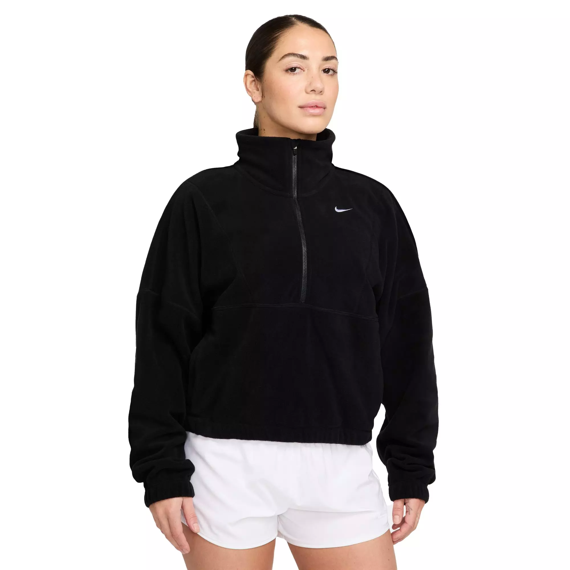 The Nike Women's One Therma-FIT 1/2-Zip Top combines ultrasoft, lightweight fleece brushed on both sides. This creates all-around fuzzy comfort that wraps you like your favorite blanket during chilly gym sessions or winding down after exercise.Therma-FIT technology regulates your body’s heat, delivering consistent warmth at every step of your fitness journey. A half-zip design lets you adjust ventilation without interrupting your routine while its relaxed, spacious fit layers smoothly under jackets.