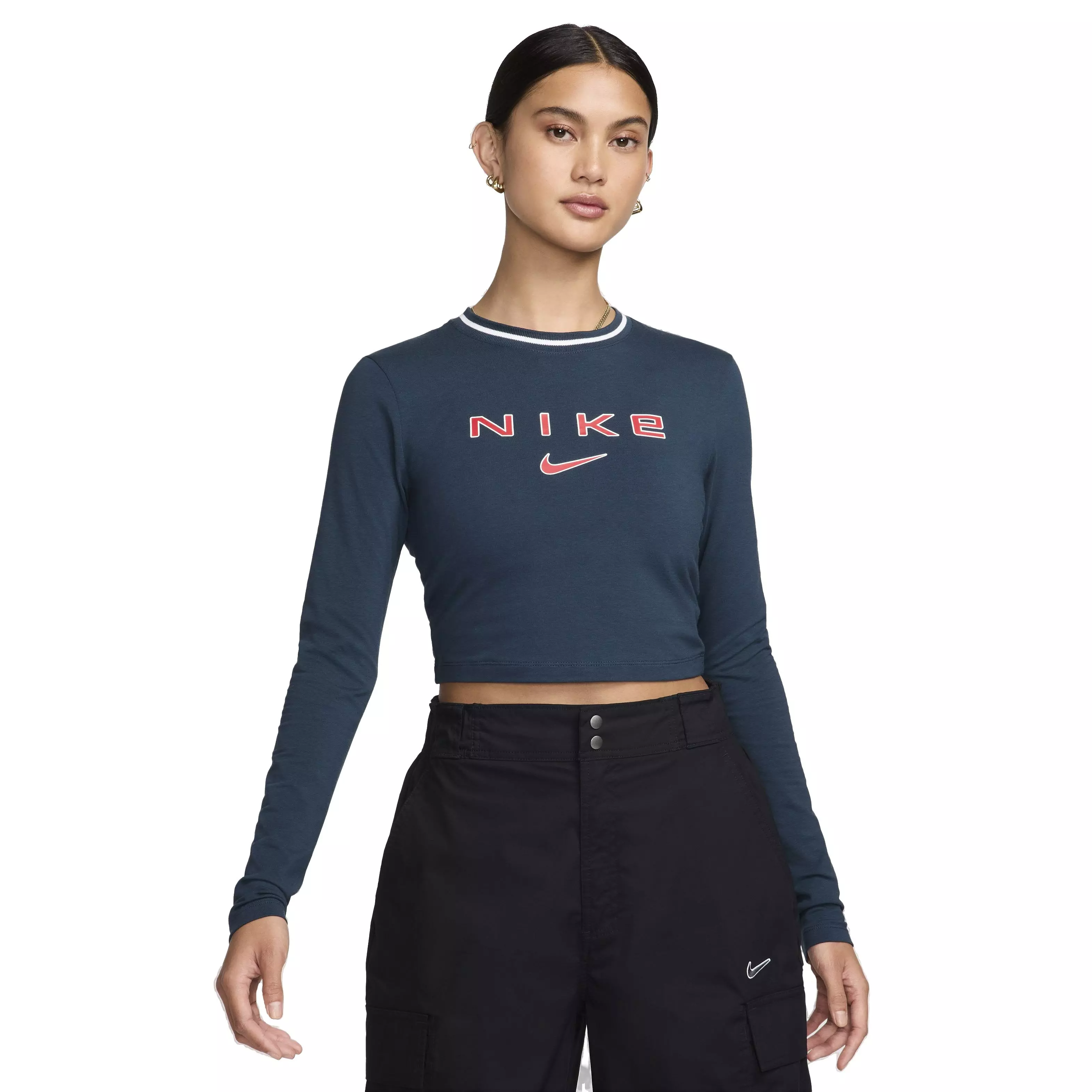 Grounded in style, comfort, and versatility, the Nike Women’s Sportswear Chill Knit Slim Long-Sleeve Cropped Graphic Tee brings a smooth jersey feel with gentle stretch and a subtle drape for an easy, body-skimming fit. The cropped length pairs effortlessly with high-waisted bottoms for everyday wear.