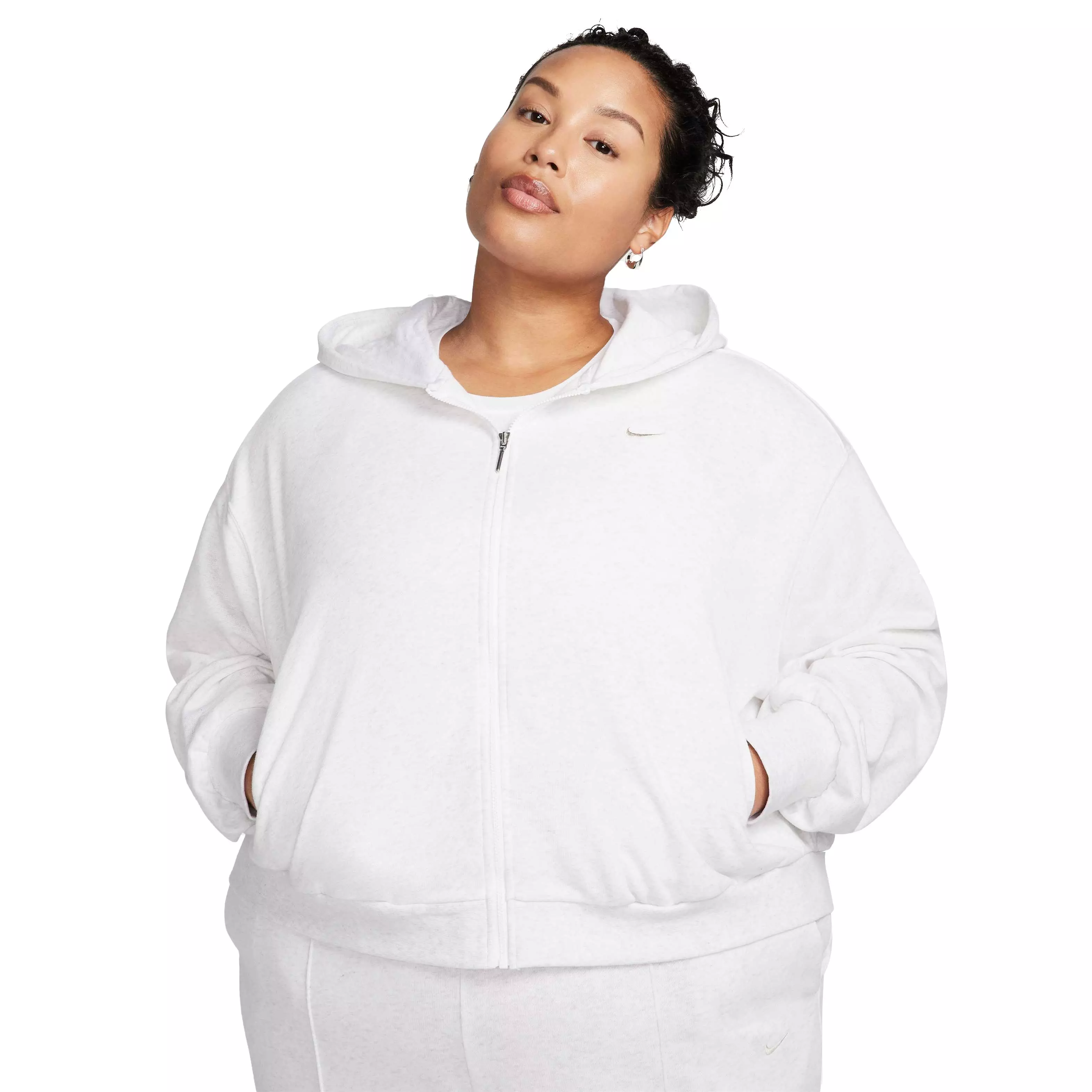 Grounded in style, comfort and versatility, meet our take on luxury loungewear. Perfect for warmer days, swap out your fleecy hoodie for this soft, light Nike Women's Sportswear Chill Terry Loose Full-Zip French Terry Hooded Jacket - White with a loose fit. It's cozy enough to wear around the house yet elevated enough to wear out in the city.Features