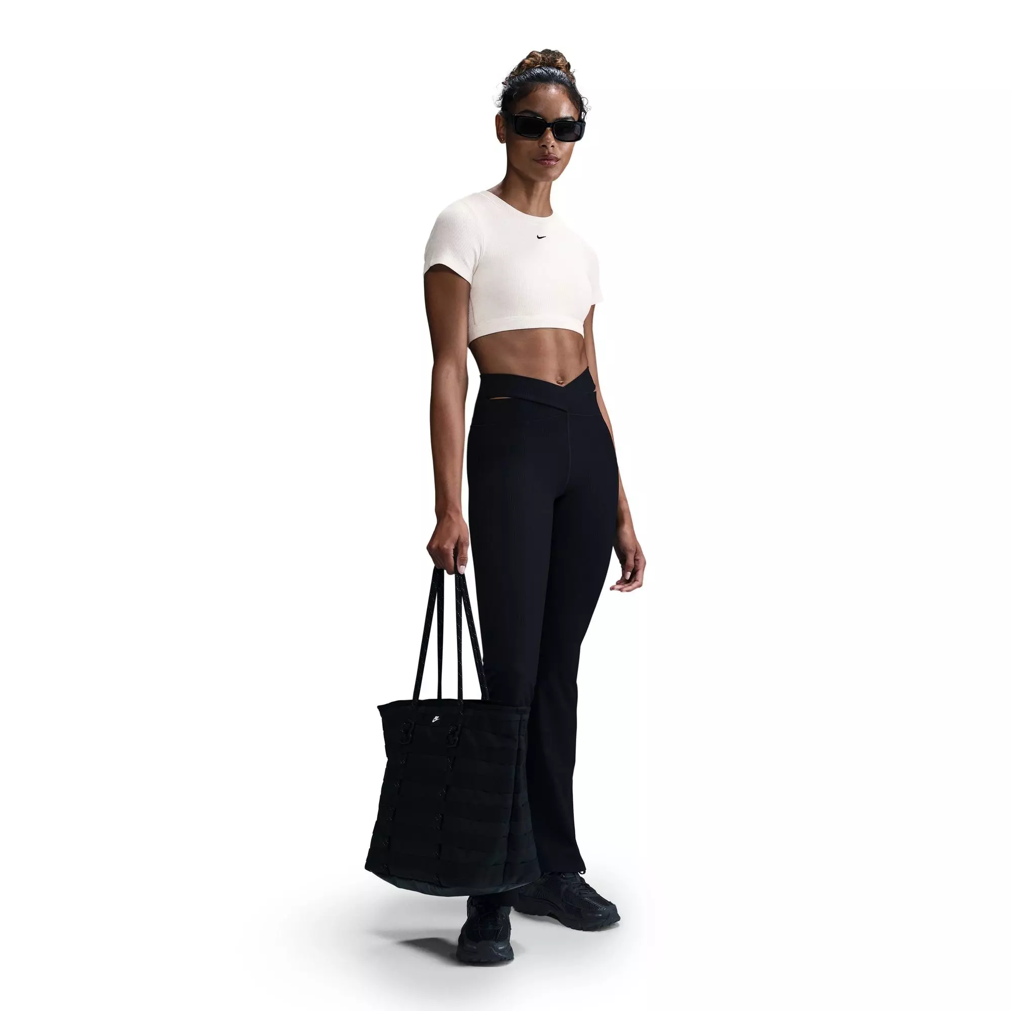 The Nike Women's Sportswear Classic Sports Bra Tee features peachy-soft, ribbed fabric that stretches to follow every move. It offers a comfy, supportive fit with a gentle hold, plenty of freedom and a sporty silhouette that adapts seamlessly to your routine.