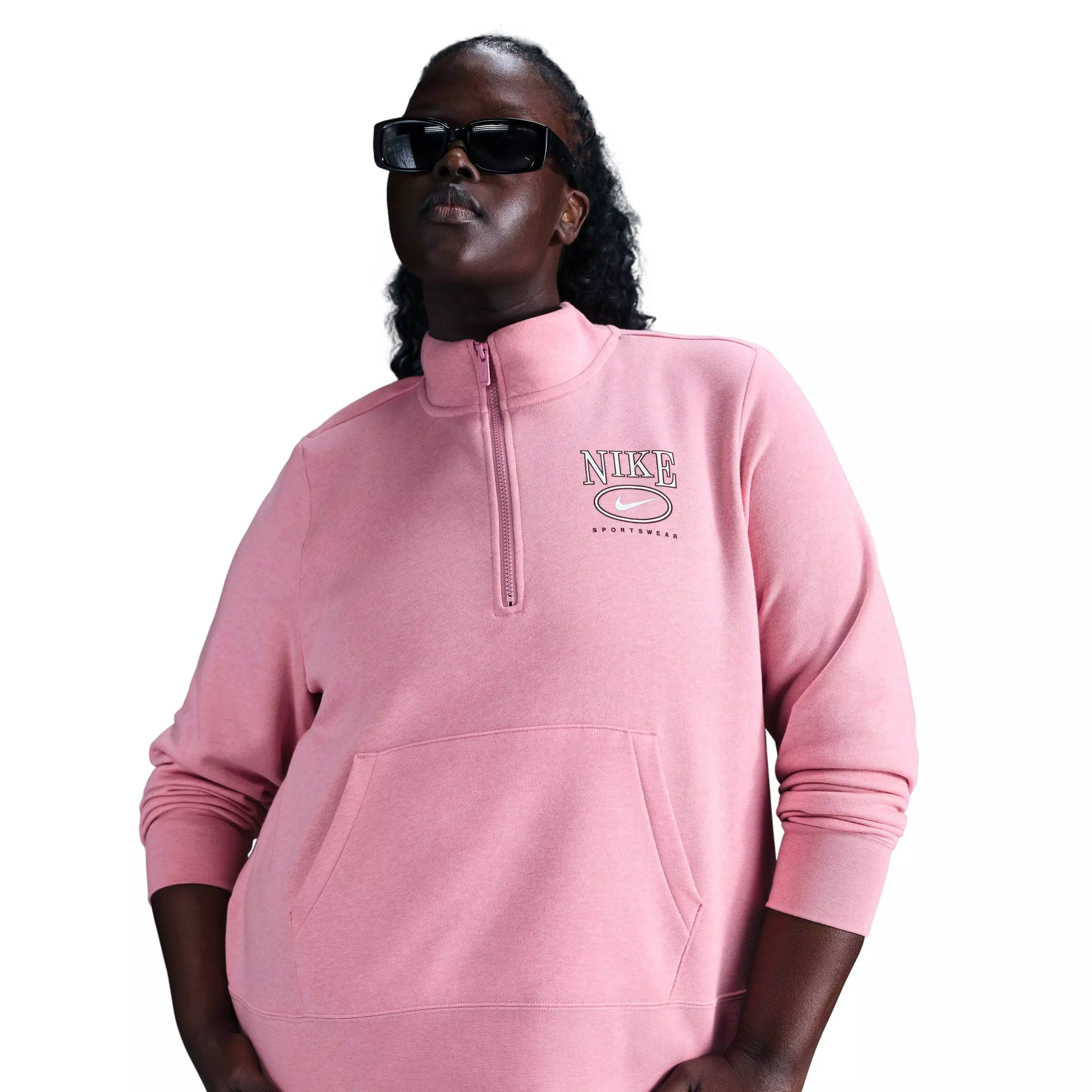 Nike Women's Sportswear Club Fleece 1/2 Zip Mock-Neck Graphic Top - Pink