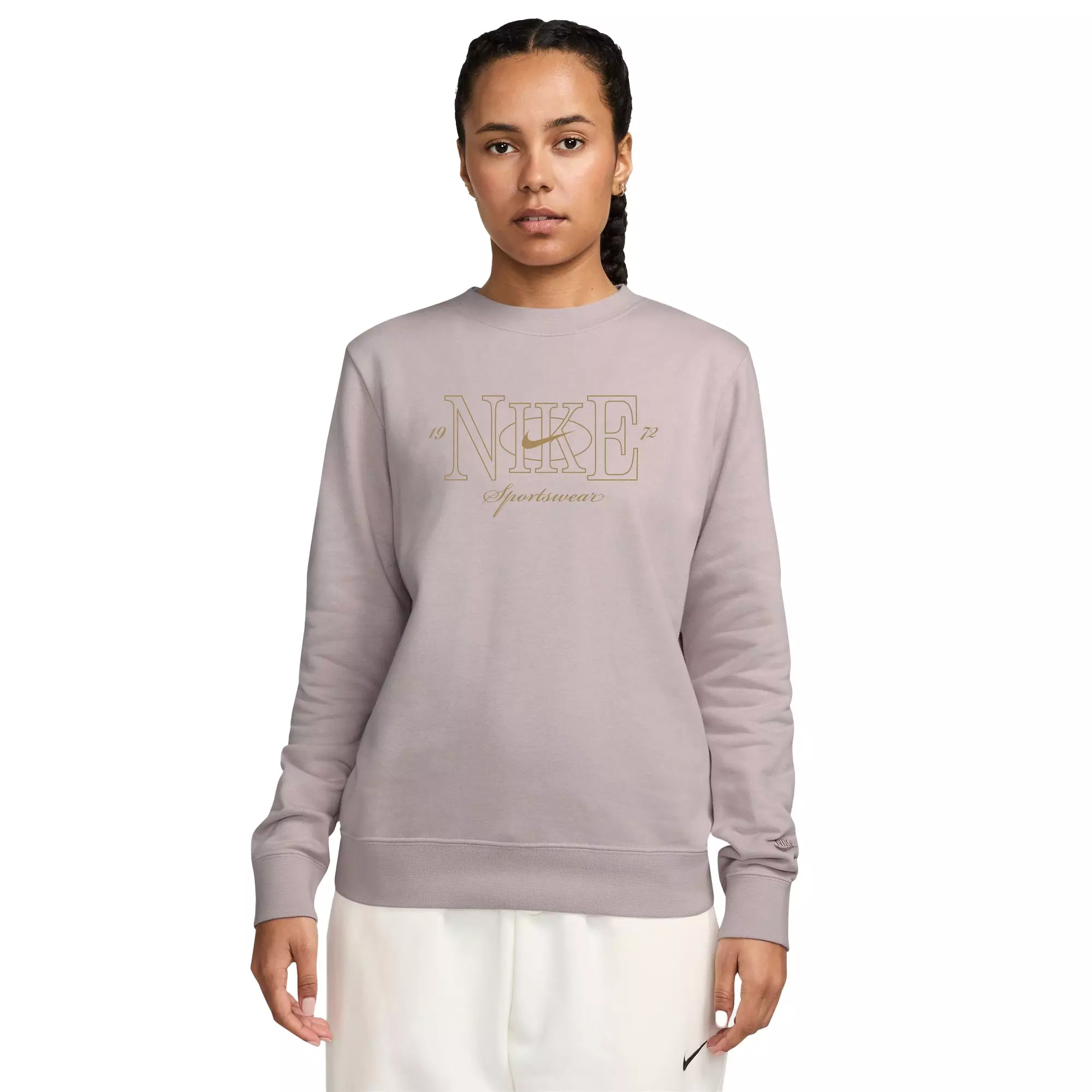 The Nike Women's Sportswear Club Fleece Crewneck Sweatshirt features subtle shimmer threads woven into the fleece, elevating everyday outfits while maintaining breathable comfort.