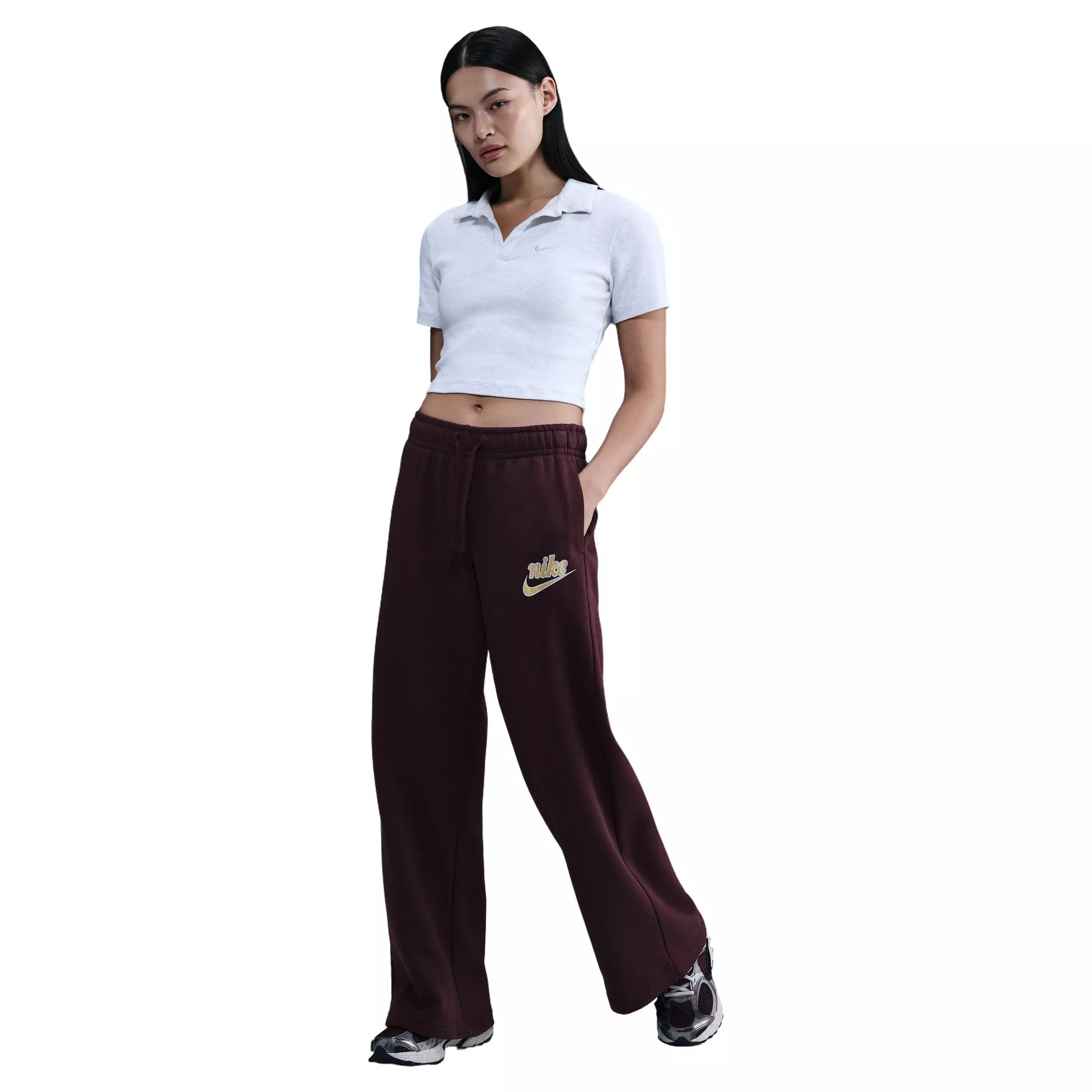 Nike Women's Sportswear Club Fleece Mid-Rise Wide-Leg Sweatpants - Burgundy