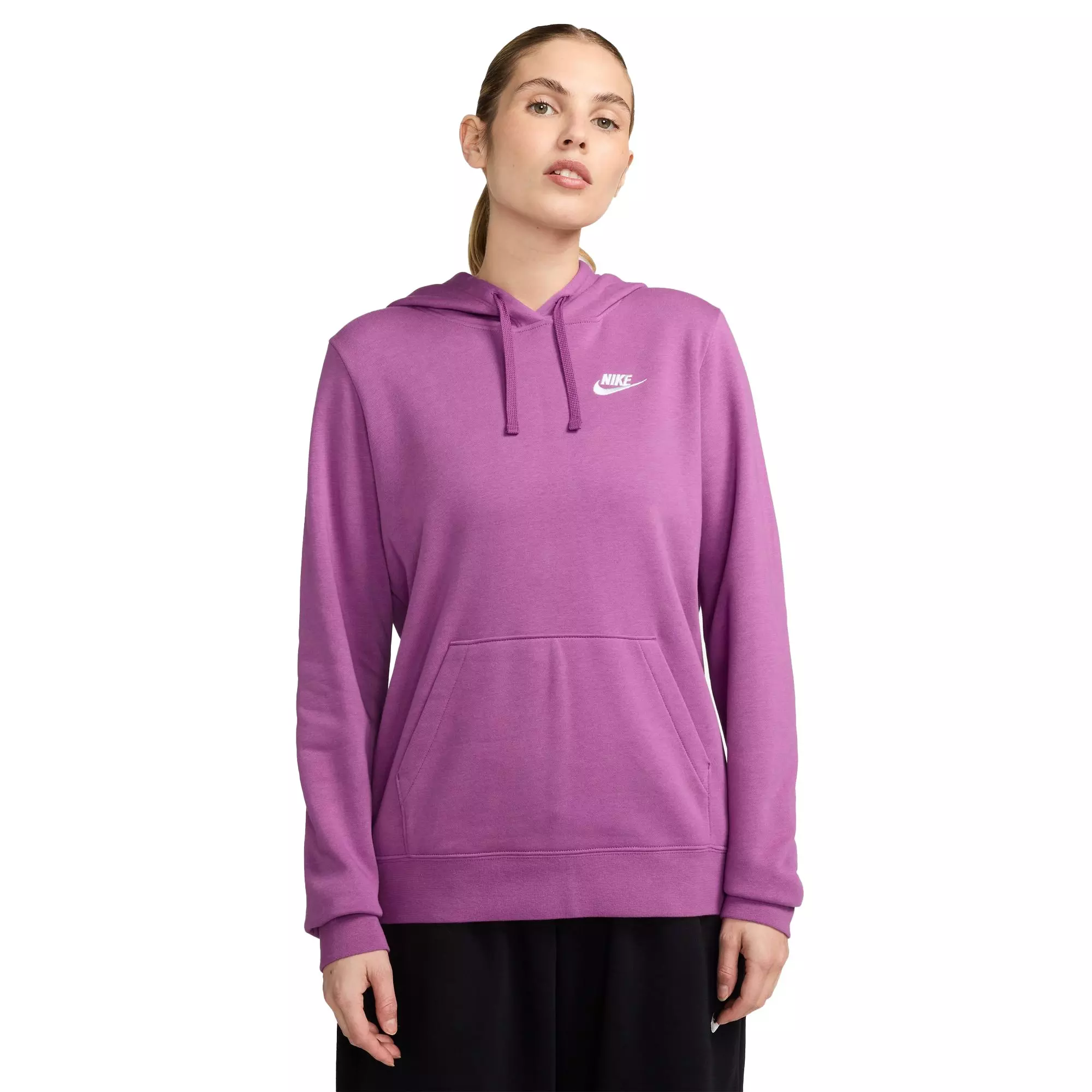 The Nike Women’s Sportswear Club Fleece Pullover Hoodie delivers cozy warmth and consistent quality. This cold-weather essential layers easily under outerwear or stands alone while you relax at home.