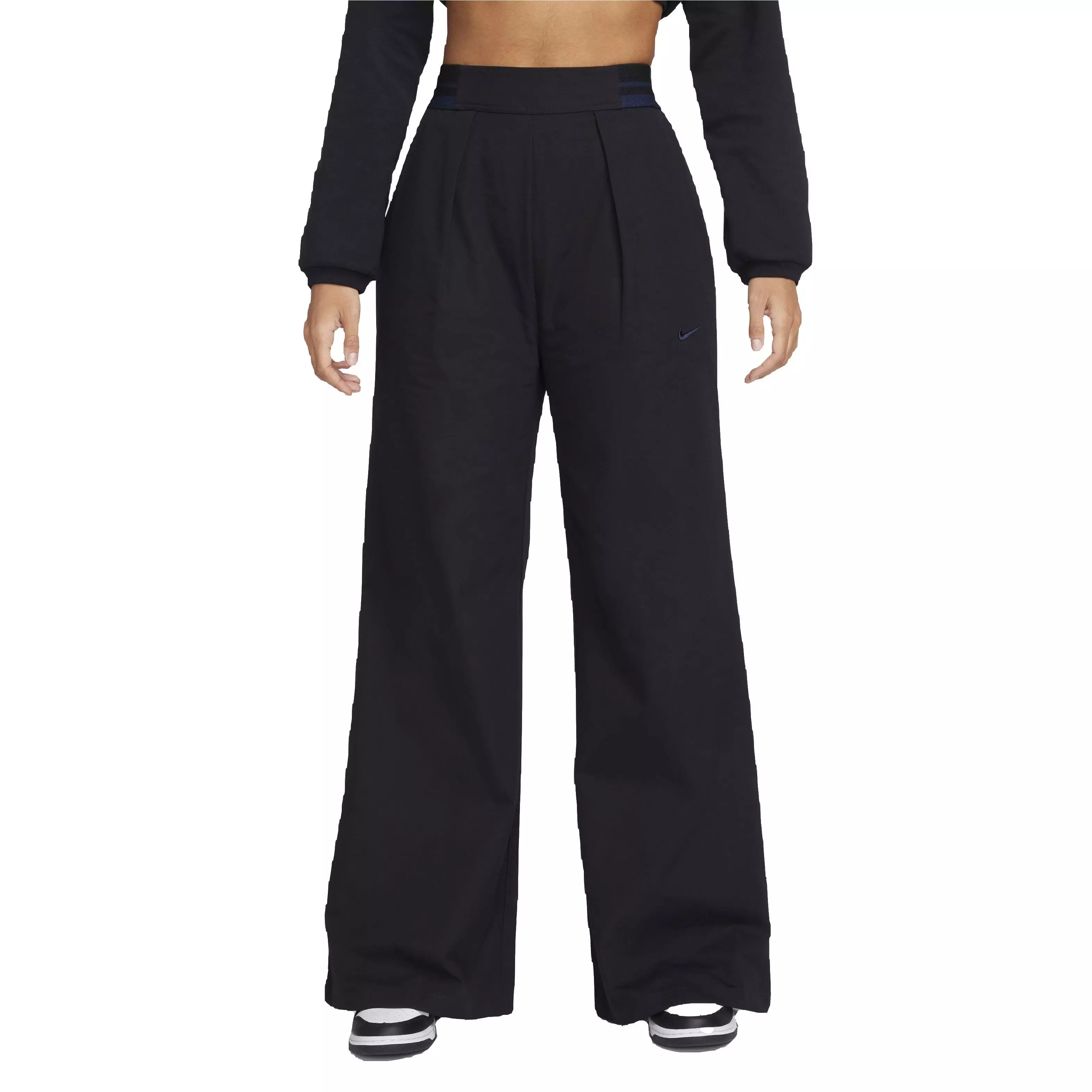 Striped details at the waist and pleats in the front come together to give you a fresh take on classic style in these Nike Women's Sportswear Collection High-Waisted Pants. Durable ripstop fabric holds its shape and the relaxed fit through the leg ensures your favorite sneakers pop. All in all, they have the perfect sporty-chic vibe to carry you through the day.Features
