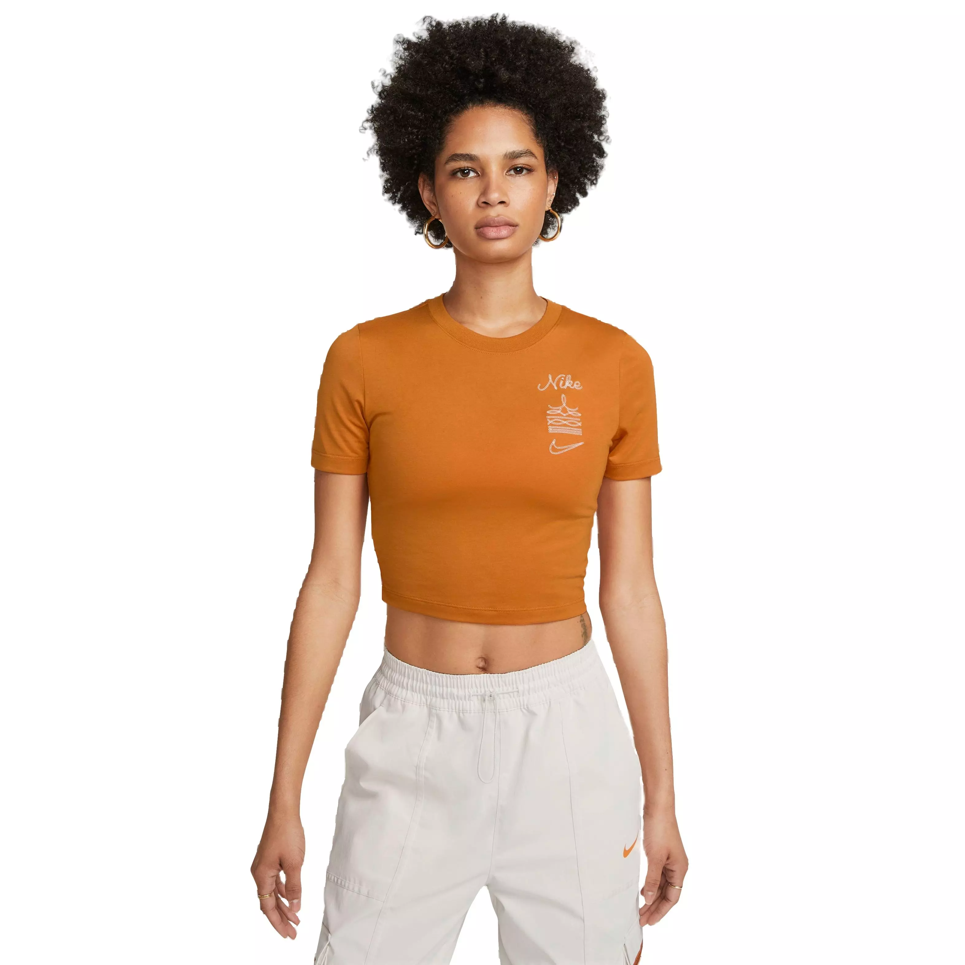 Nike Women's Sportswear Essential Gel Slim Crop Tee-Orange
