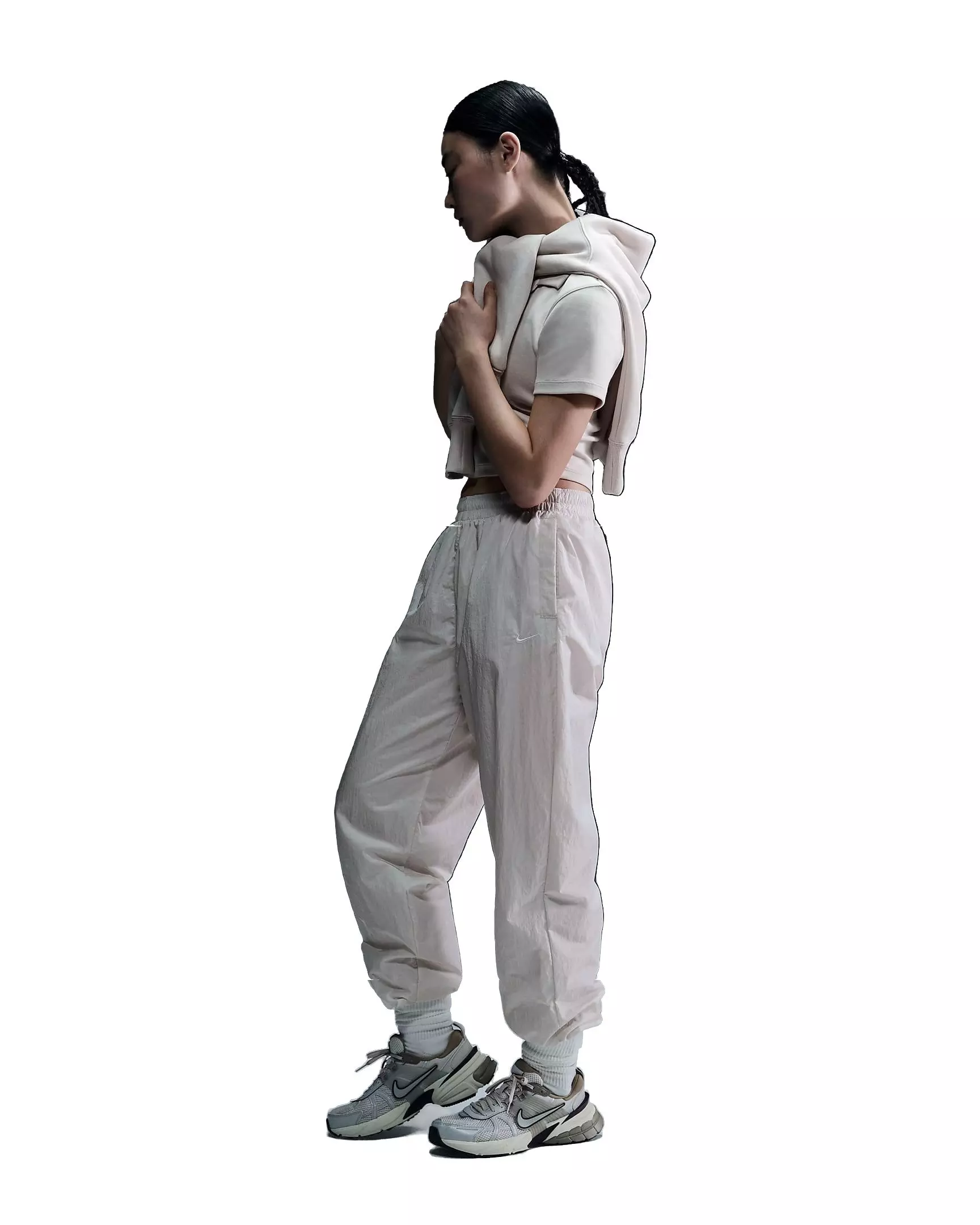 With a water-repellent finish and built-in UV protection, the Nike Women's Sportswear Essential Mid-Rise Oversized Woven Joggers shield you come rain or shine. Their lightweight woven fabric features a partial sweat-wicking mesh lining that keeps you cool and dry.