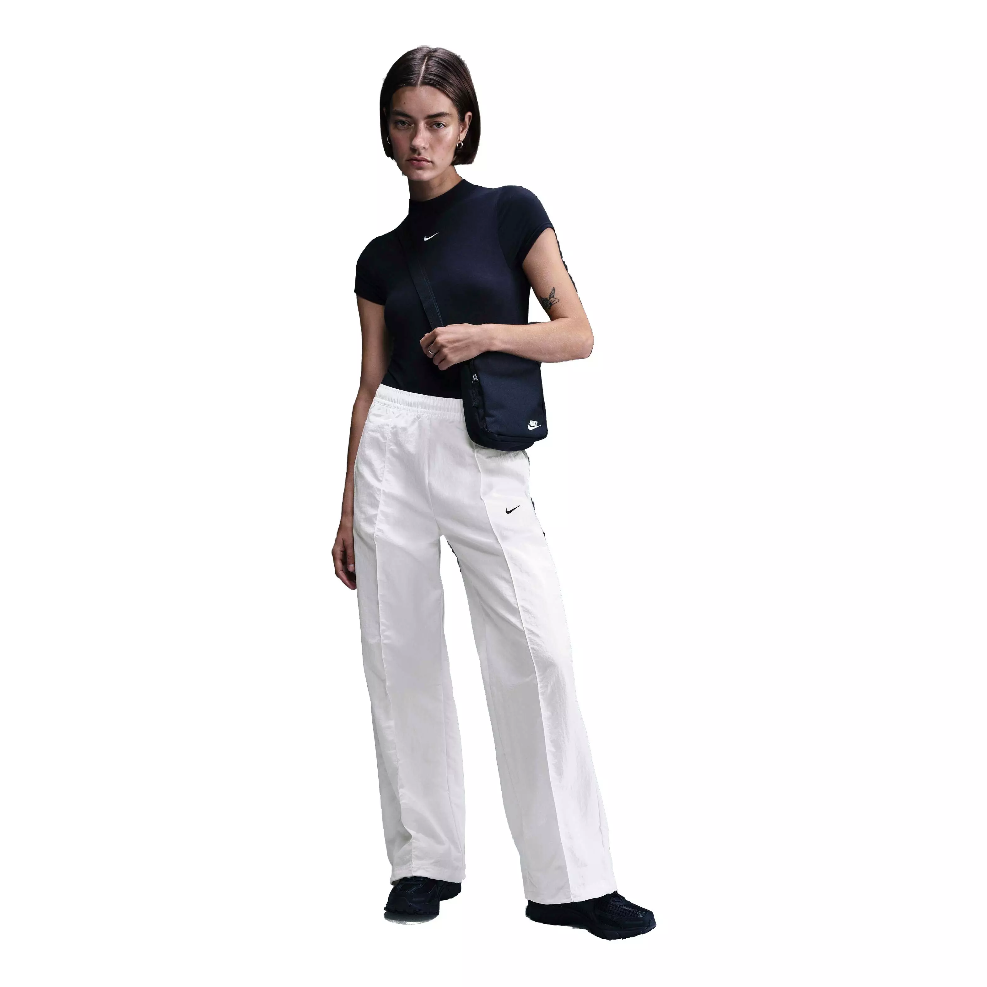 Simplicity meets functionality. These crisp, crinkled Nike Women's Sportswear Everything Woven Mid-Rise Open-Hem Pants have everything you need for all-day wear: water-repellent fabric, multiple pockets and an adjustable design. A bungee toggle at the hem means you can tighten it for a jogger-like fit or keep it open for a relaxed look. You've got stylish options—rain or shine.Features