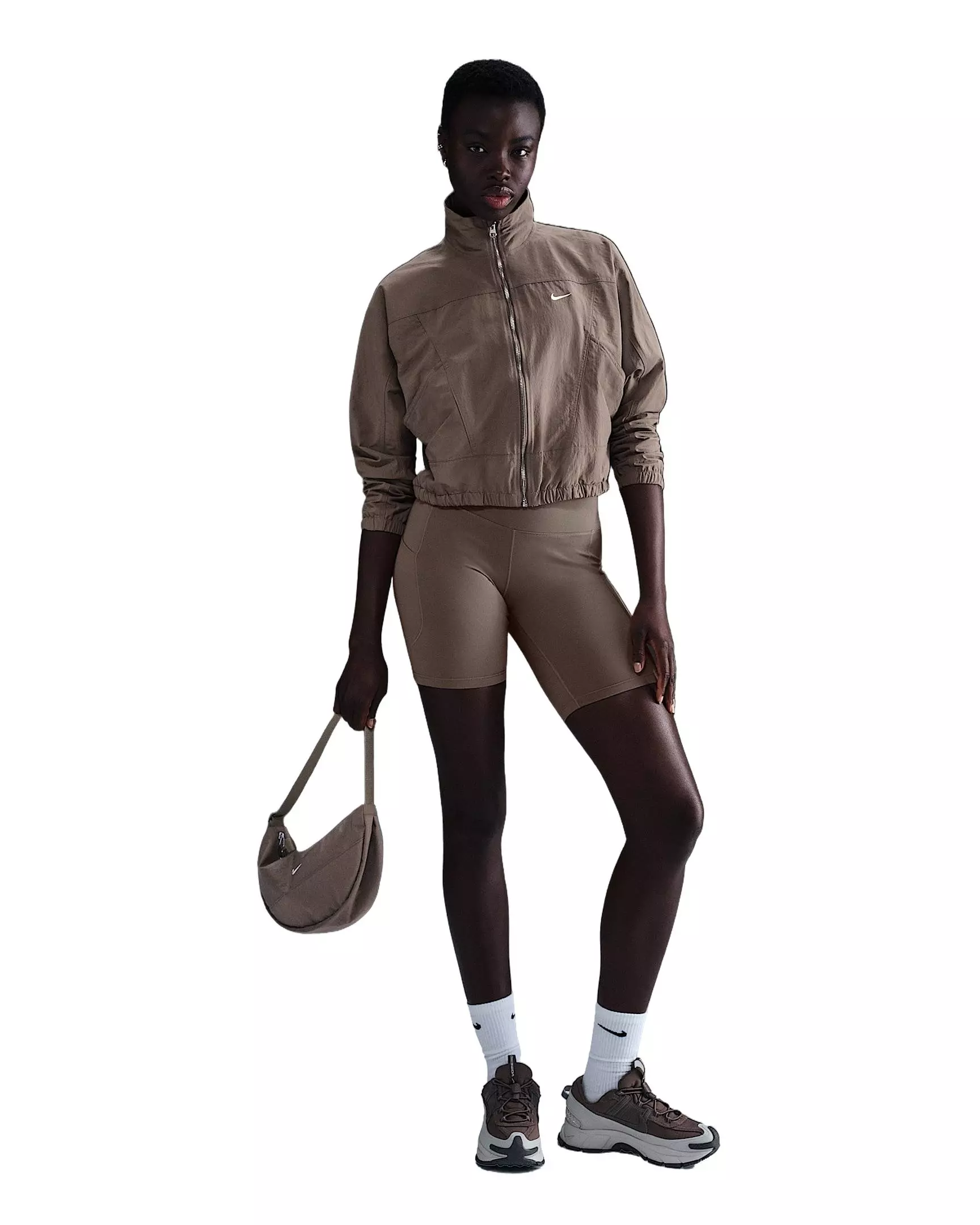 Simplicity and functionality come together in this lightweight Nike Women's Sportswear Everything Wovens Oversized Repel UV Protection Jacket - Brown. Textured, water-repellent nylon and an elongated collar help keep you covered come rain or shine. Angled seams and a cropped length add dimension to the oversized fit.Features