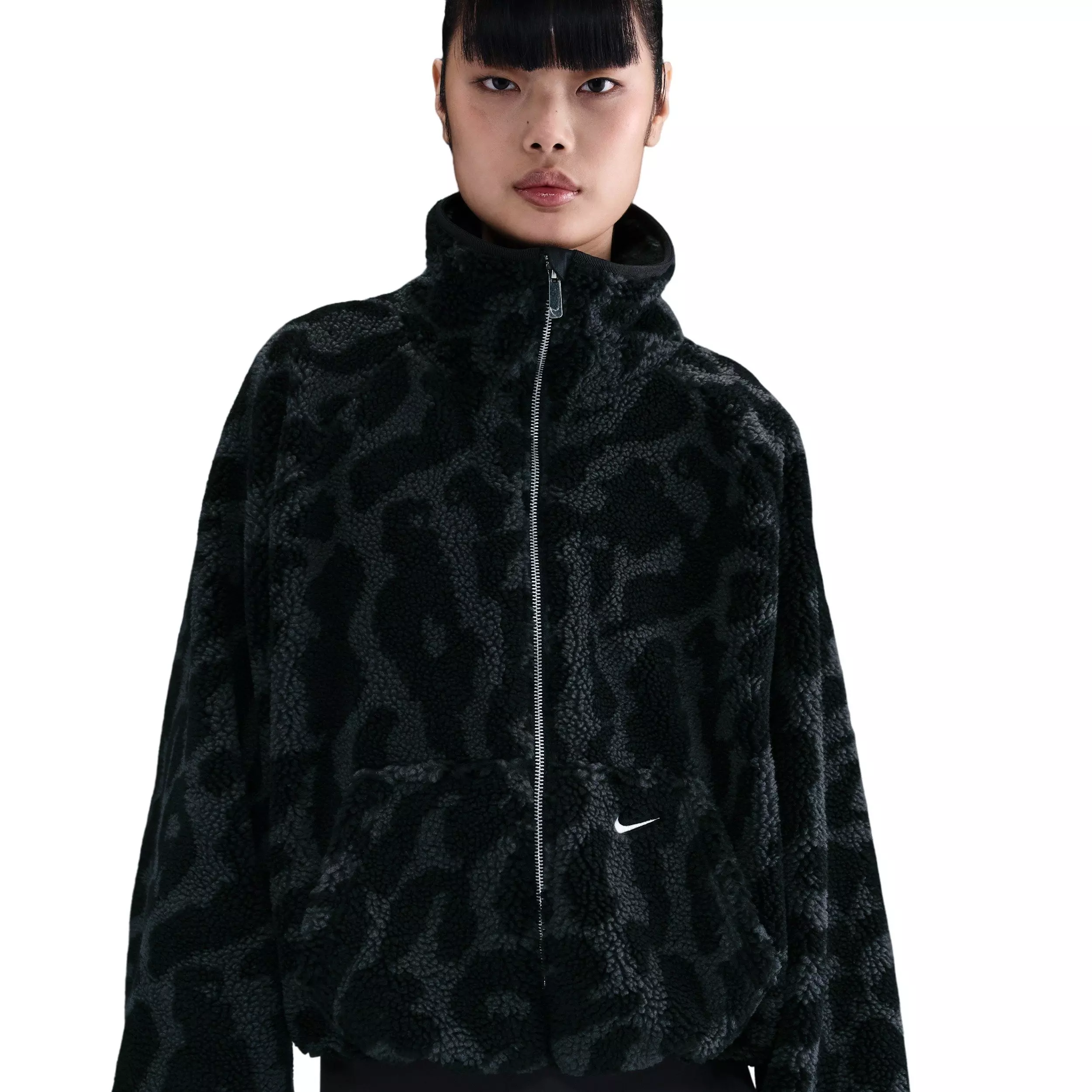 Keep cozy in this oversized Nike Women's Sportswear High-Pile Fleece Jacket - Black. High-pile fleece feels dense and warm to help keep you comfortable on chilly days.Features