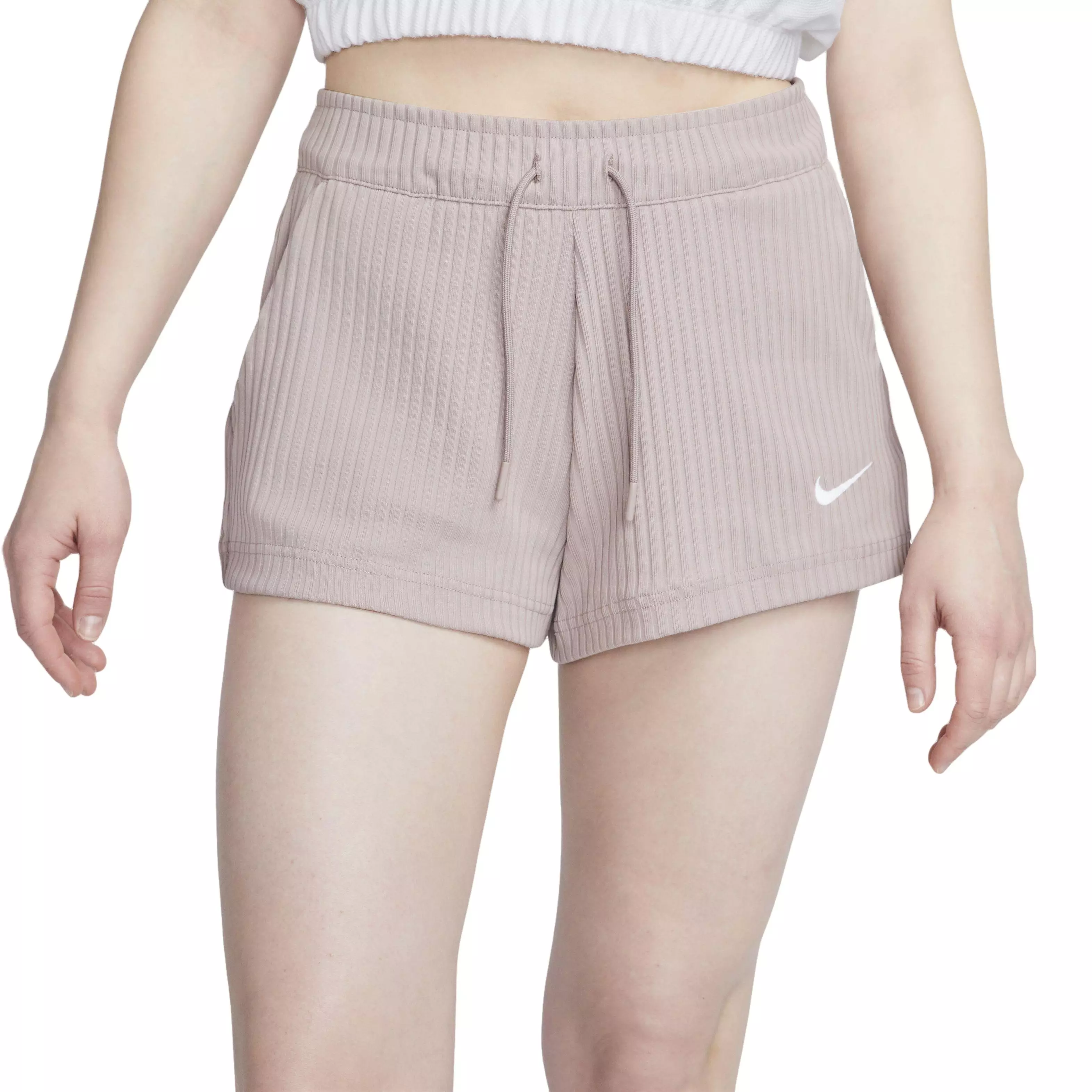Keep it effortless and carefree in these knit Nike Women's Sportswear High-Waisted Ribbed Jersey Shorts. Their ribbed fabric is lighter than fleece but still feels extraordinarily soft and comfy.Features