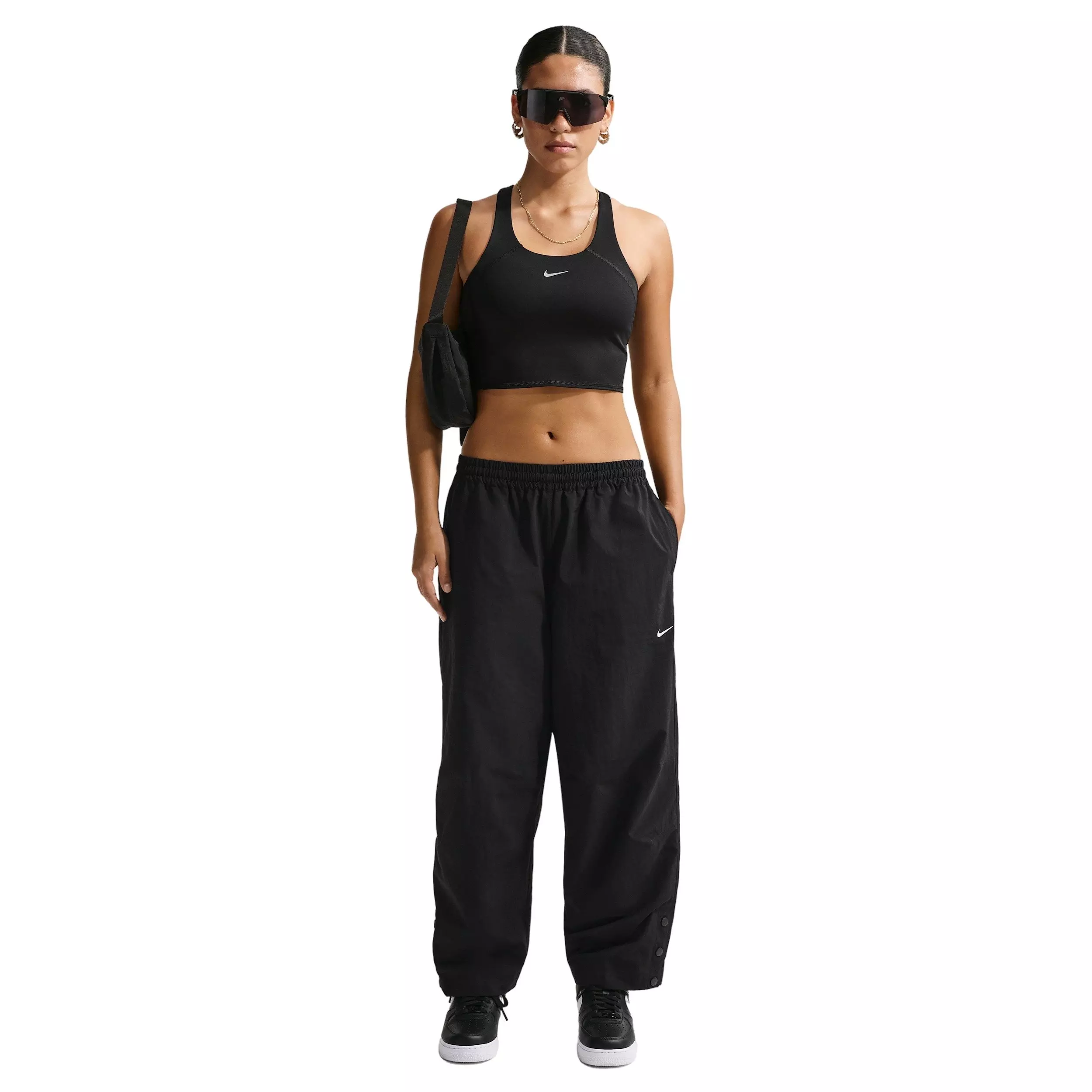 Classic sport style gets a modern twist. These taffeta Nike Women's Sportswear Oversized High-Waisted Woven Pants have a voluminous fit and slightly cropped length designed to hit at your ankles. Snaps at the cuffs and articulation at the knees add a polished finish.