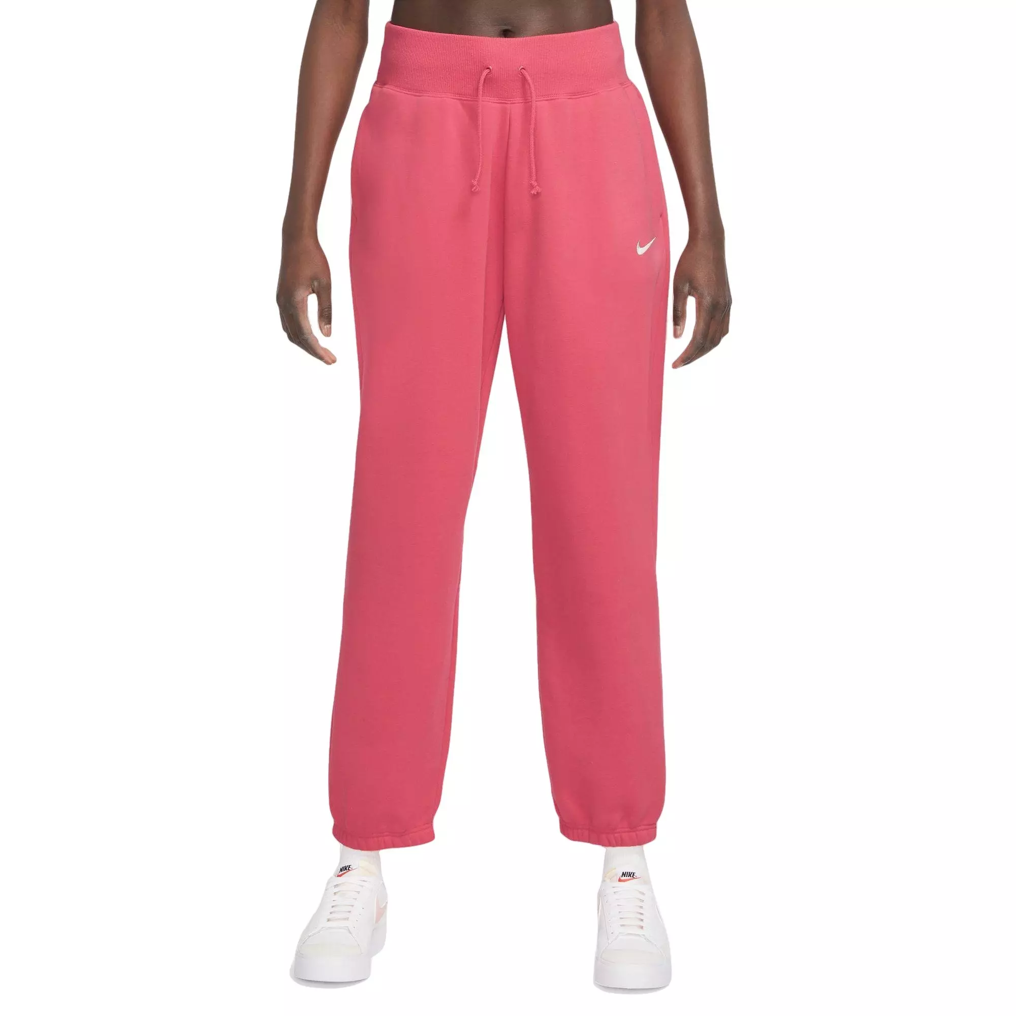 Rise up and transform your fleece wardrobe with strong cozy vibes. The Nike Women's Sportswear Phoenix Fleece High-Rise Fleece Oversized Pants - Light Fusion Red have extra room in the legs for a fit that's comfy and relaxed. The taller ribbed waistline sits higher on your hips for a stay-put, snug feel and a bold look.
